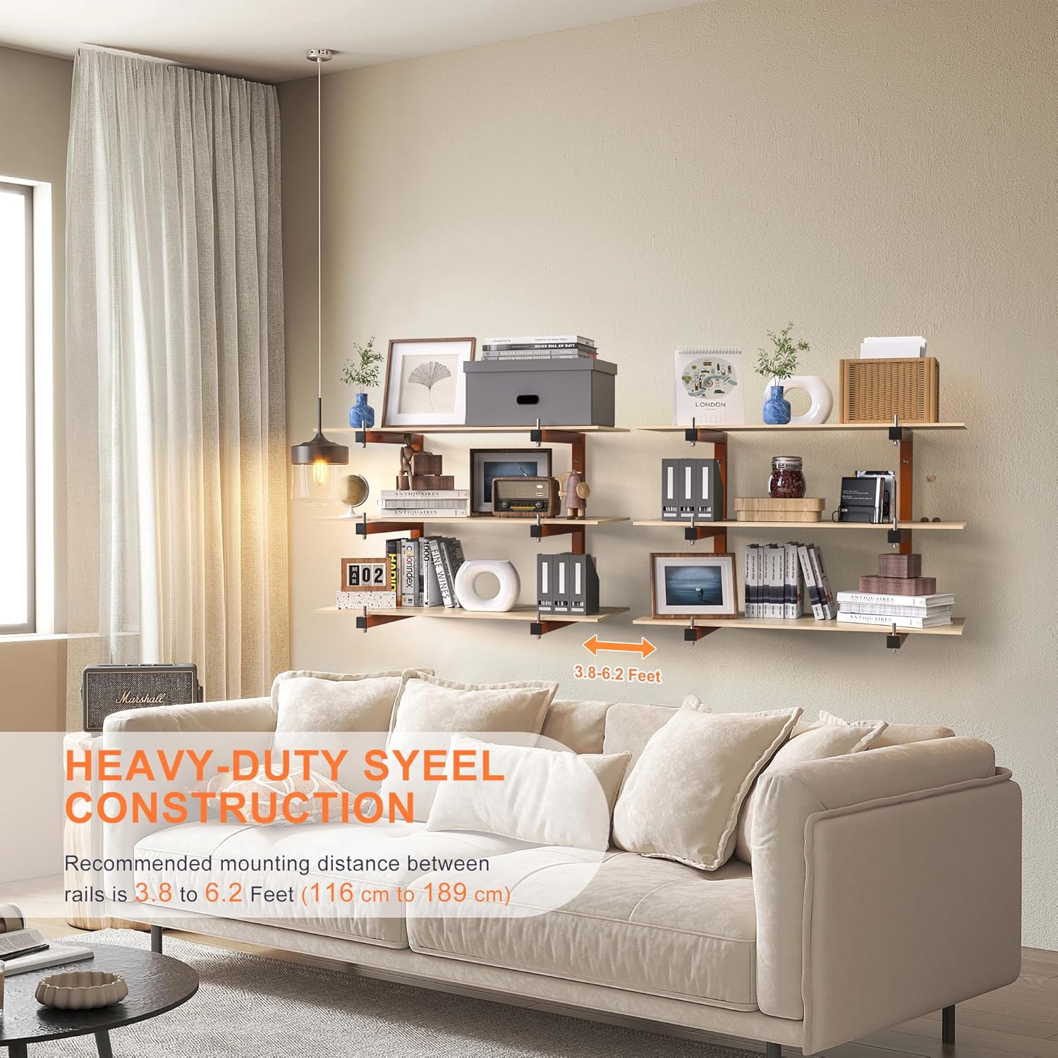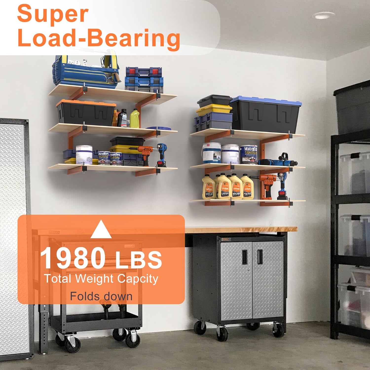 • 1980 LBS WEIGHT CAPACITY : Wall-mounted wooden storage rack adopts a more supportive triangular one-piece design. each shelf can hold up to 220 lbs, the 4-pack wood rack organizer can hold up to 1320 lbs, and the 6-pack wood storage system can hold up to 1980 lbs, so you can store all your heavy and bulky items, these metal organizer units are roomy enough for your everyday needs.