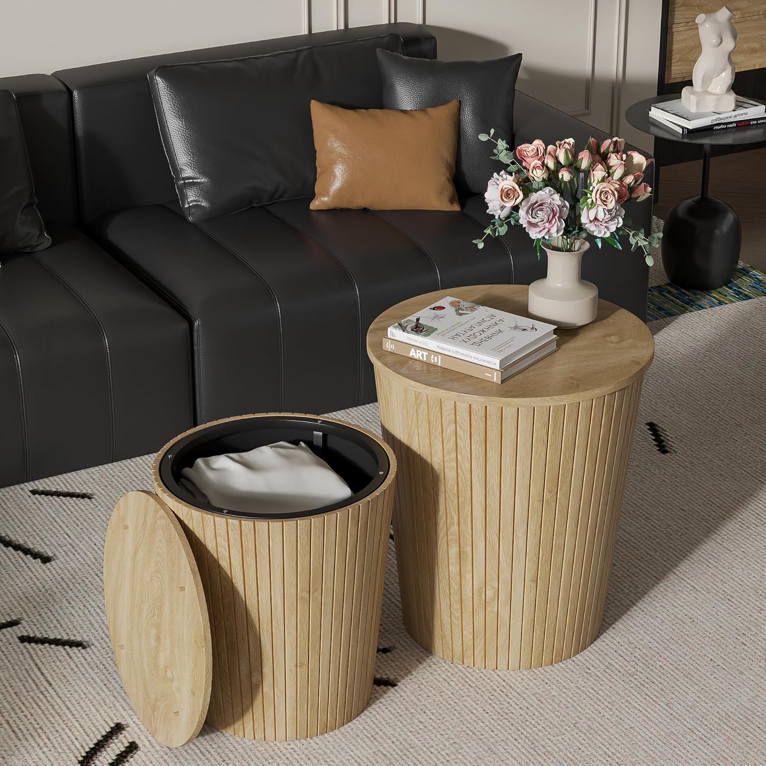 • [Clever design]: Each small table comes with a lid that can be locked to the open edge of the base or top. The living room set can be used as a blanket rack, tray table, coffee table or storage box.