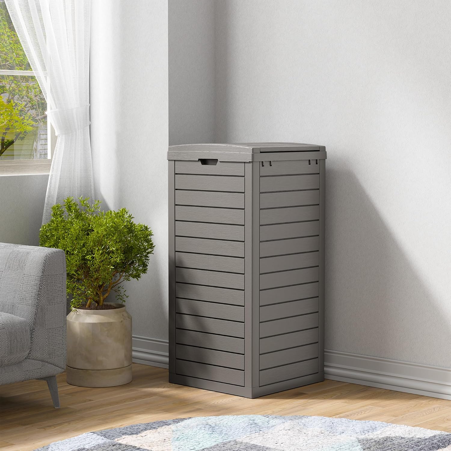 NUNU LAB 31 Gal Outdoor Trash Can with Lid - Heavy Duty Waterproof Resin, Removable Drip Tray, Fits 33-40 Gallon Bags - Large Garbage Bin for Patio, Backyard, Deck