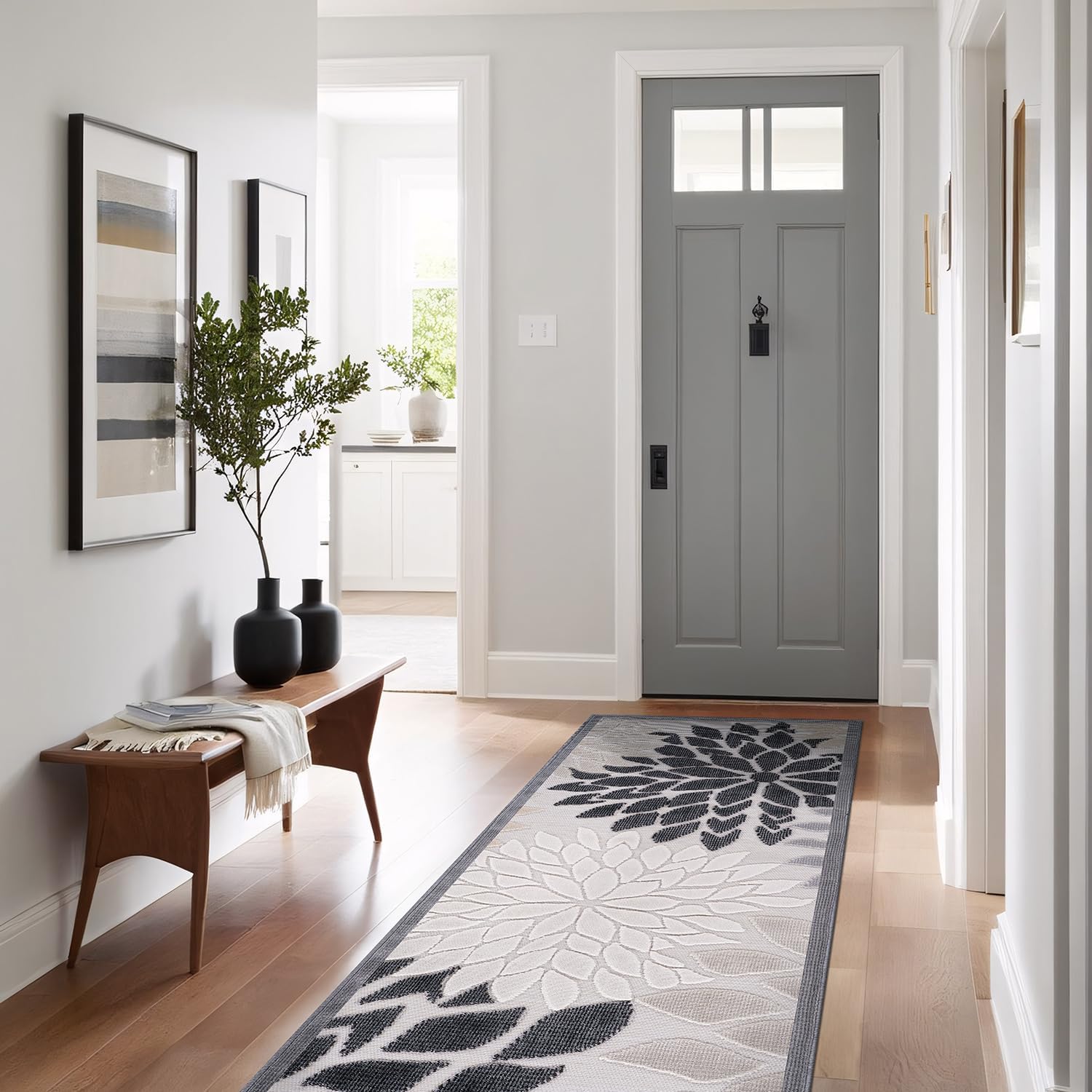 Beverly Rug Outdoor Runner Rug 2x7 Modern Floral Tropical Area Rugs for Indoor and Outdoor Patio Easy to Clean Non Shedding Living Room Porch Garden Washable Outside Carpet (2 x 7 Beige)