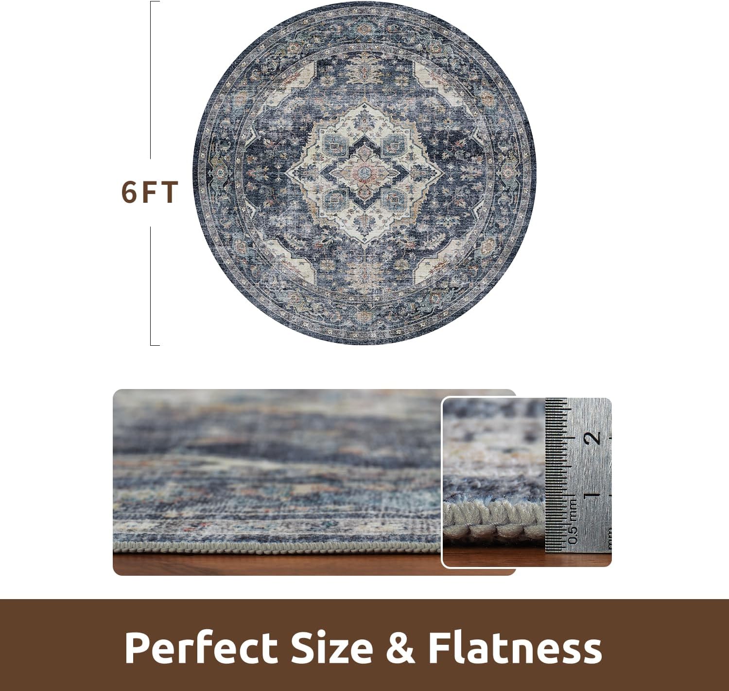 AMOAMI-6FT Round Rug-Rugs for Living Room-Vintage Soft Blue Rugs for Bedroom-Non Slip Circle Rug-Machine Washable Rug for Dining Room Living Room Bedroom Office Under Table