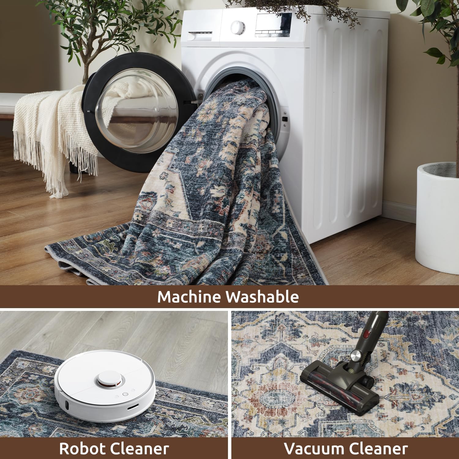 • Easy Care:For daily maintenance, spot clean your rug regularly to eliminate dust and dirt. Machine washable, launder your rug on a gentle cycle with water below 40°C, using a mild detergent or rug cleaner when needed.If the rug is located in an area that receives direct sunlight, regularly rotate your rug so that it fades evenly over time