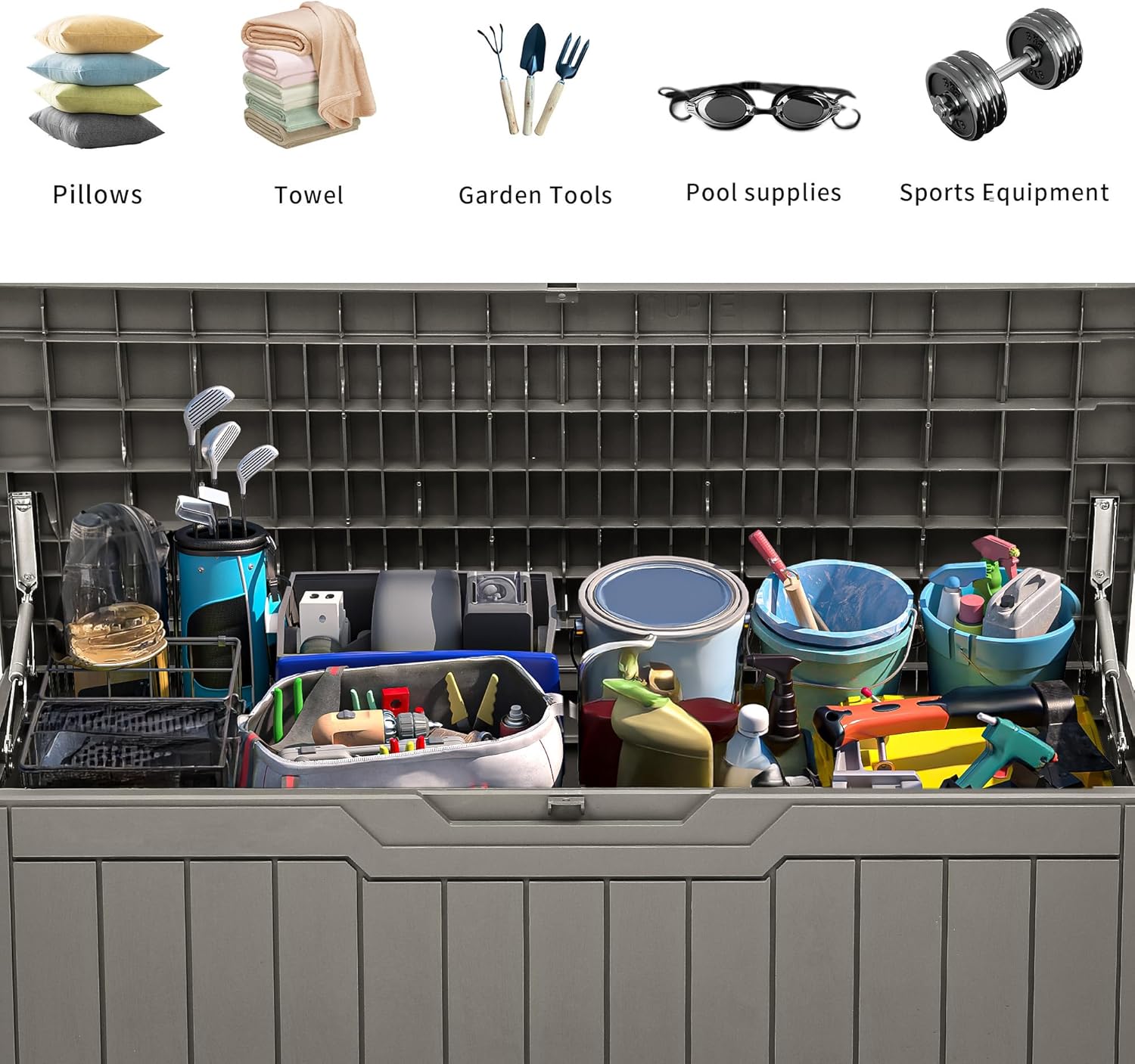 • Versatile and Secure: Our resin storage box is designed for both indoor or outdoor use, suitable for storing patio furniture cushions, gardening tools, pool accessories, and more; The deck box with lock design ensures your items stay safe and secure