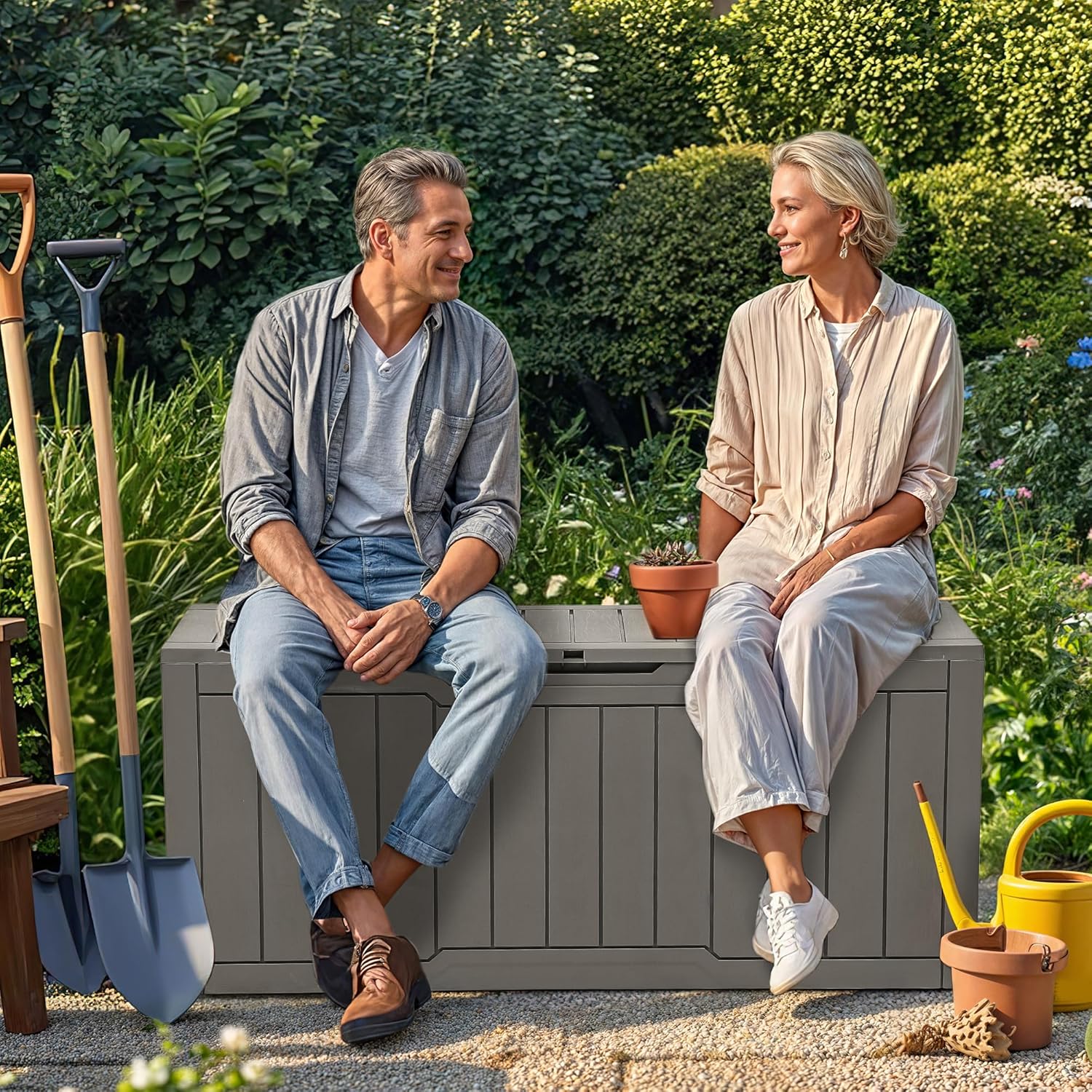 • Convenient Design: The resin outdoor storage features hydraulic struts for smooth, slow, and safe opening and closing, with dual side handles for effortless movement, whether by yourself or with a friend