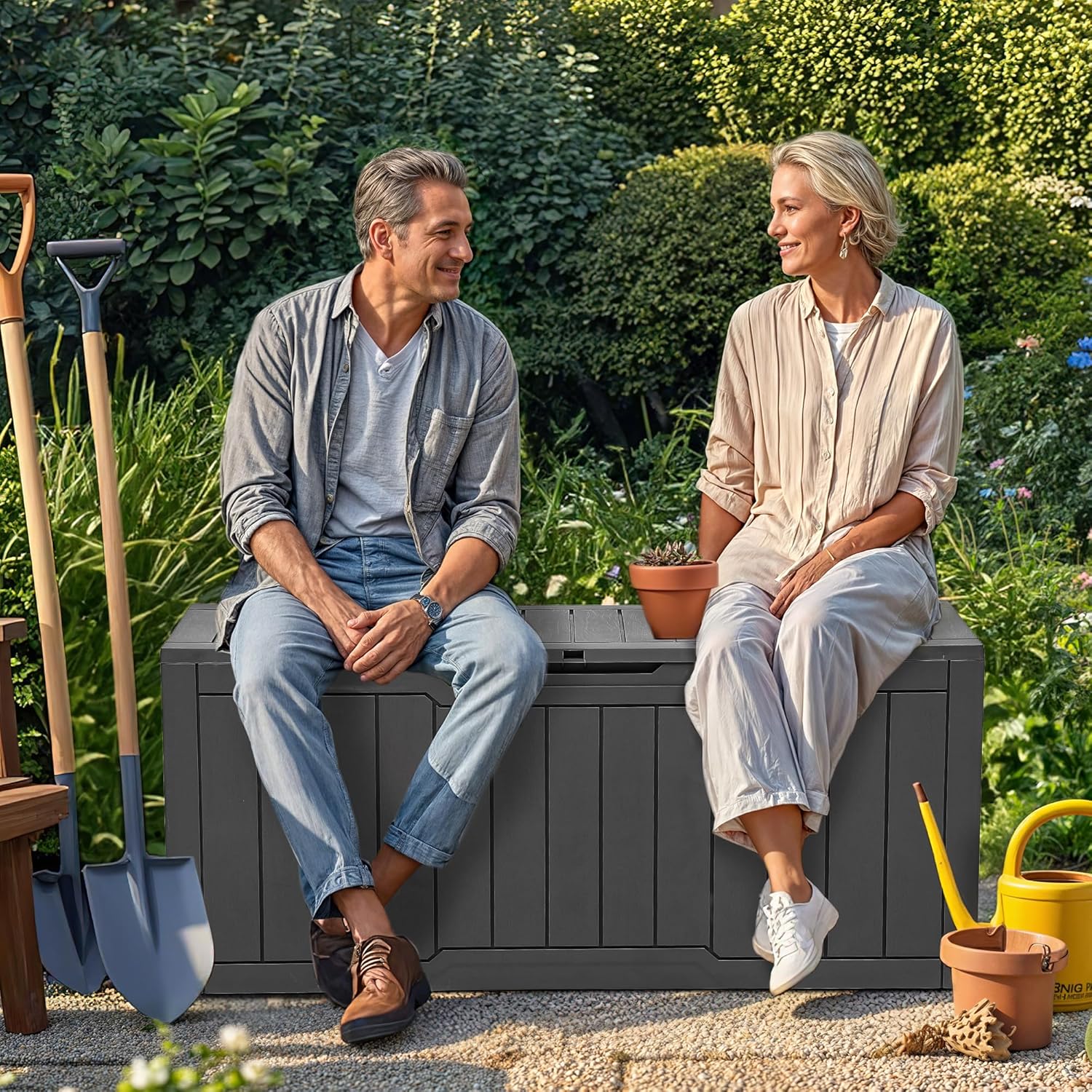 • Extra Seating: Doubling as a comfortable bench seat, this plastic deck box can support up to 485 pounds; Set it up in just 15-30 minutes, and enjoy its unique wood-grain texture that seamlessly blends with any patio or deck decor in no time
