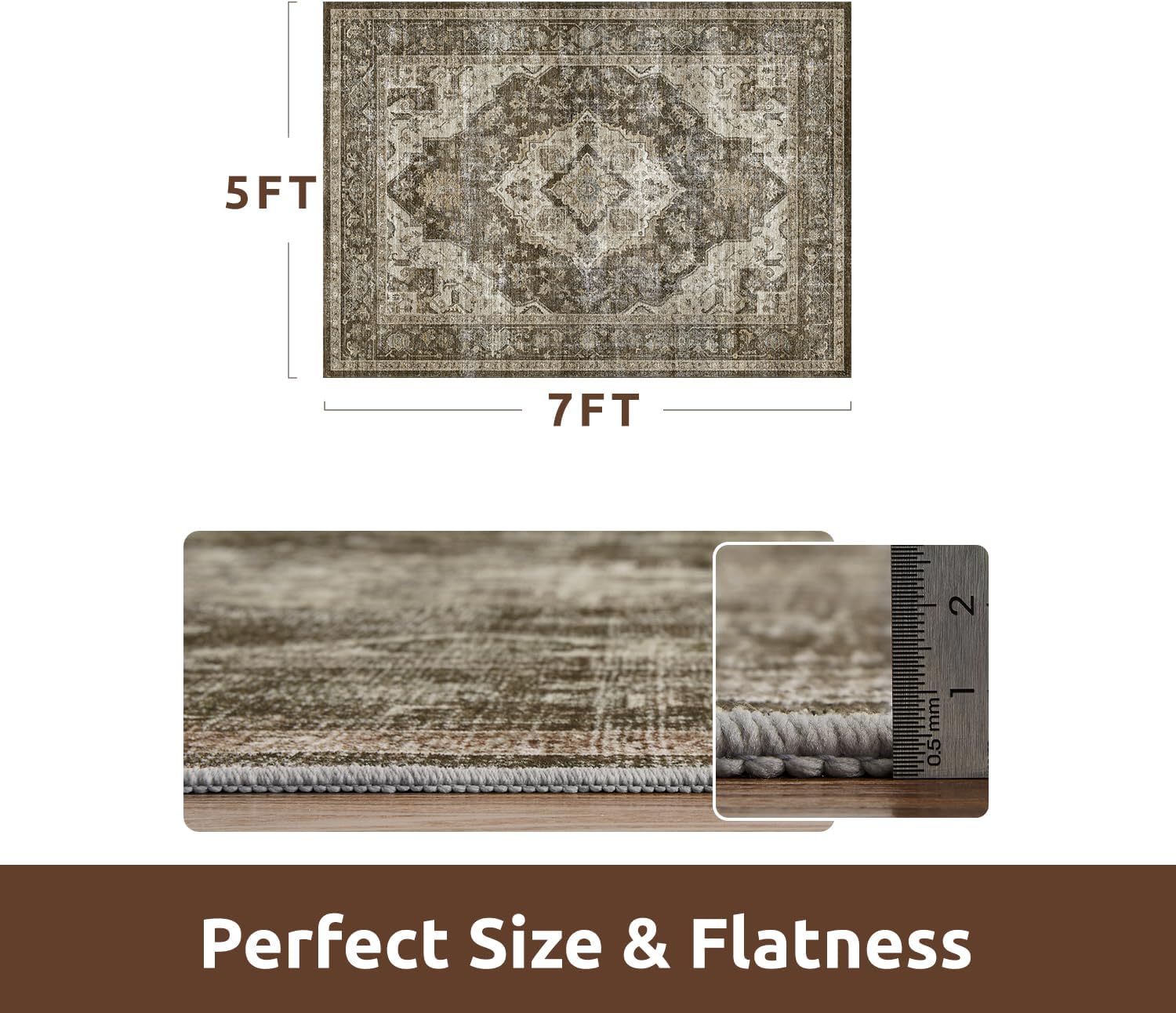 AMOAMI-Area Rug 5X7 Rugs for Living Room-Vintage Soft Coffee&Brown Rugs for Bedroom-Non Slip Carpet-Machine Washable Rug for Dining Room Living Room Bedroom Office Under Table