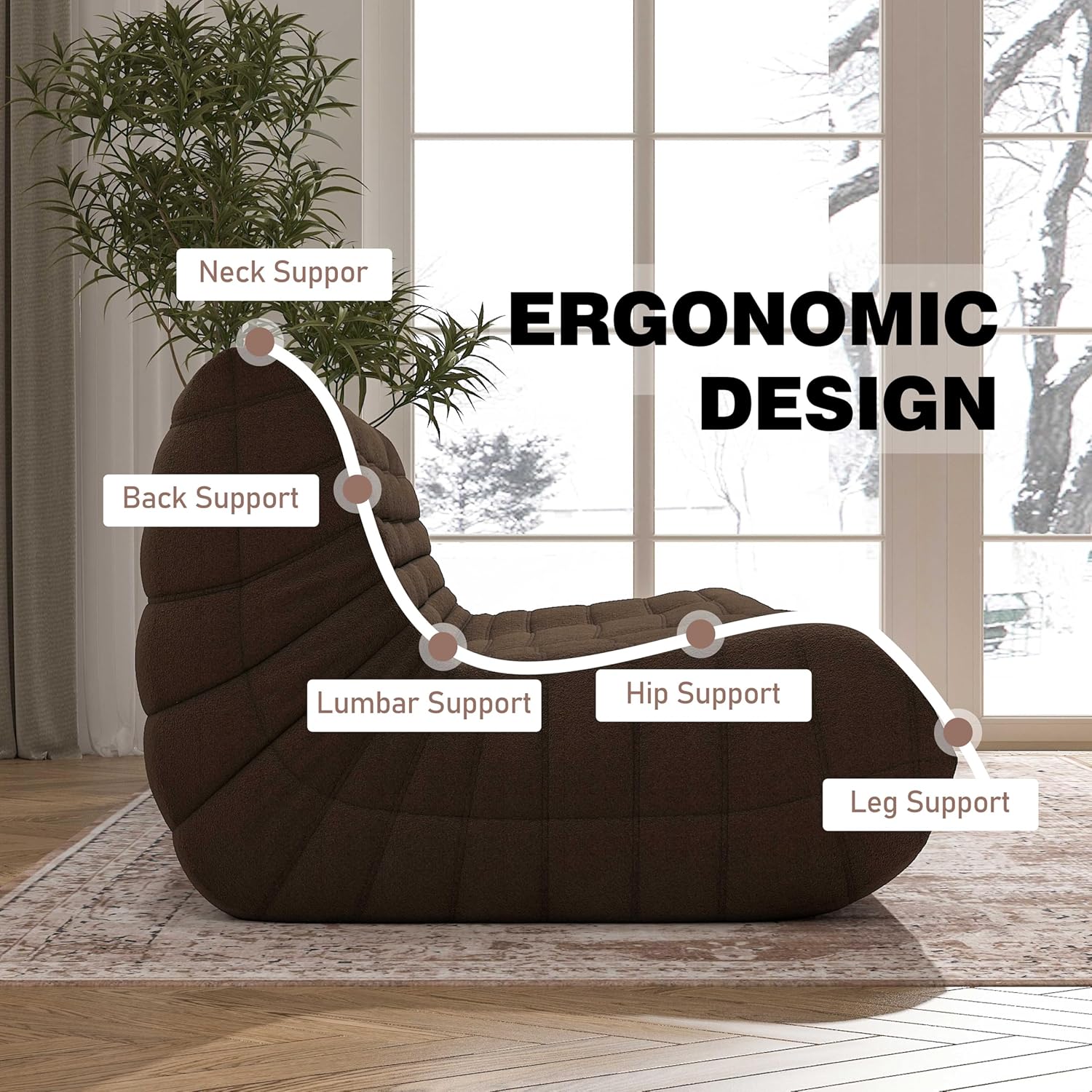 • 【Ergonomic Design】-Designed with your comfort in mind, the bean bag chair features a thoughtful ergonomic design that provides exceptional support for your neck, back, lumbar, hip and leg region. The loveseat high-elastic memory foam filling conforms to your body, offering targeted support and ensuring a cozy sitting experience.