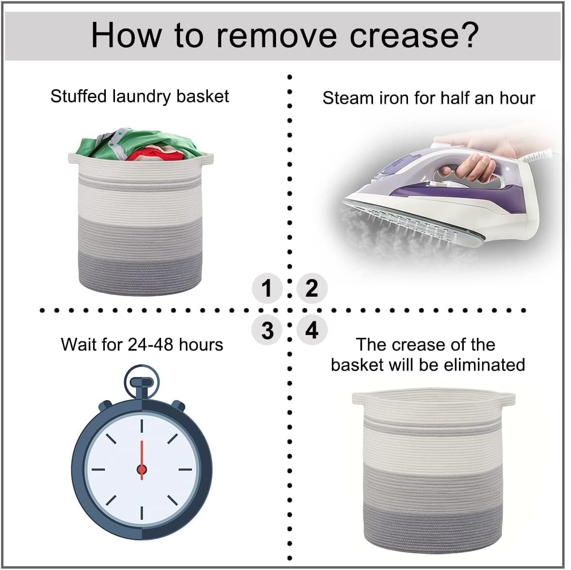 • Washable Large Basket: This large basket can be washed by hand or machine with gentle detergent. If machine washed, please put them into a laundry bag. NOTE: These cotton rope baskets are folded when shipping, but it will turn back to its elegant shape quickly if you fill it with some towels or clothing, and iron is great idea to remove the creases