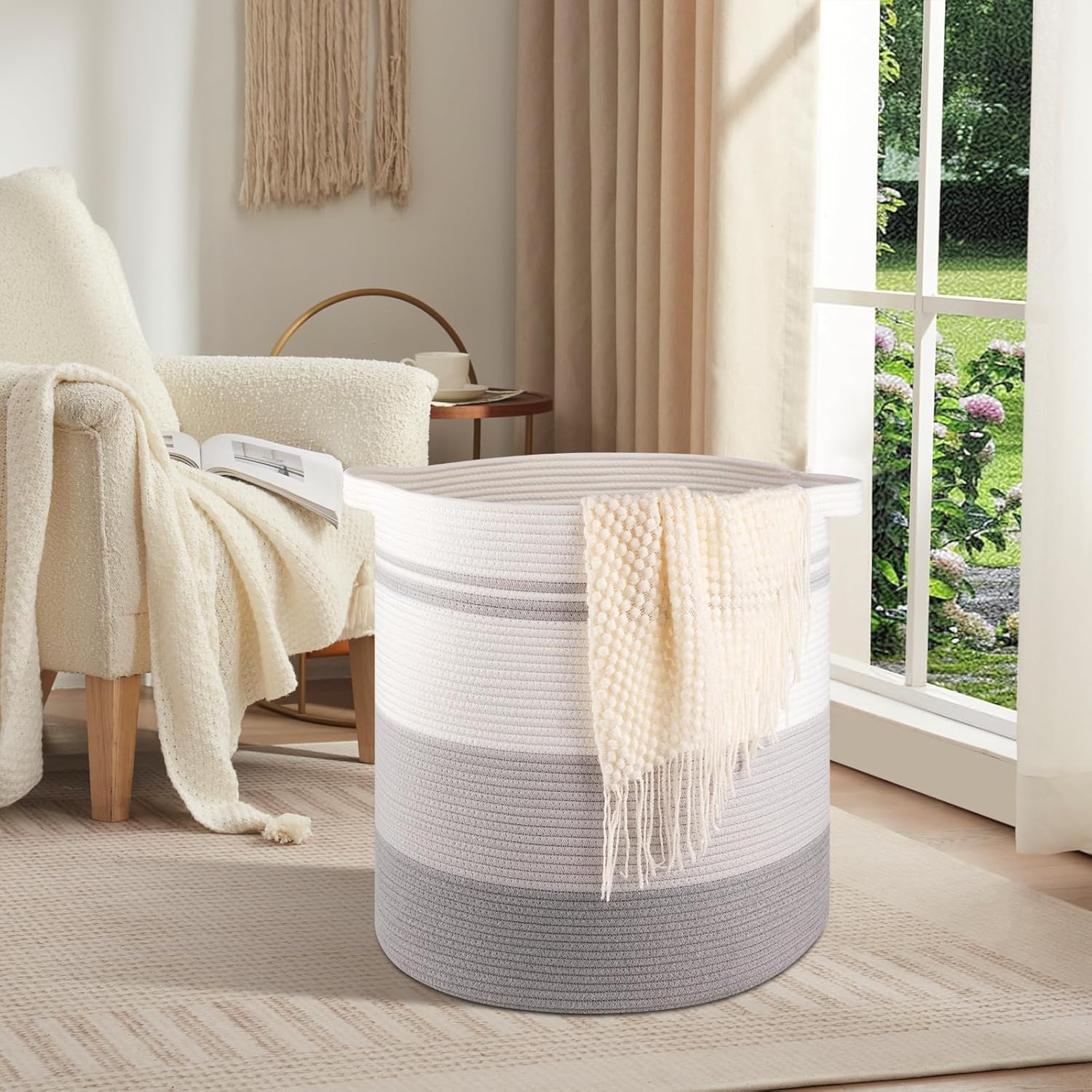OIAHOMY 100L Laundry Hamper - Storage Basket with Handles, Decorative Woven Basket for Living Room, Toys Bin, Pillows, Blankets, Clothes - 19x21in - Gradient Gray