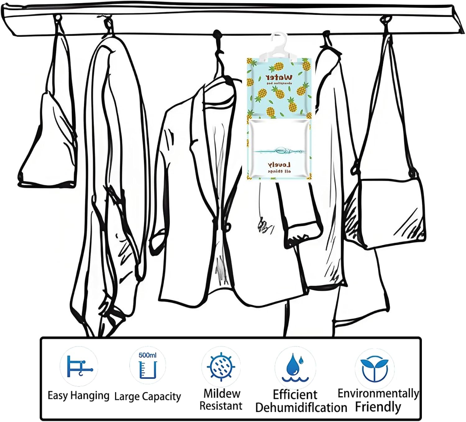 • Moisture absorber packets provide an easy solution to protecting items and fabrics from excess moisture.By Hanging them up,physical dehumidification creates a drier and more comfortable environment for you.