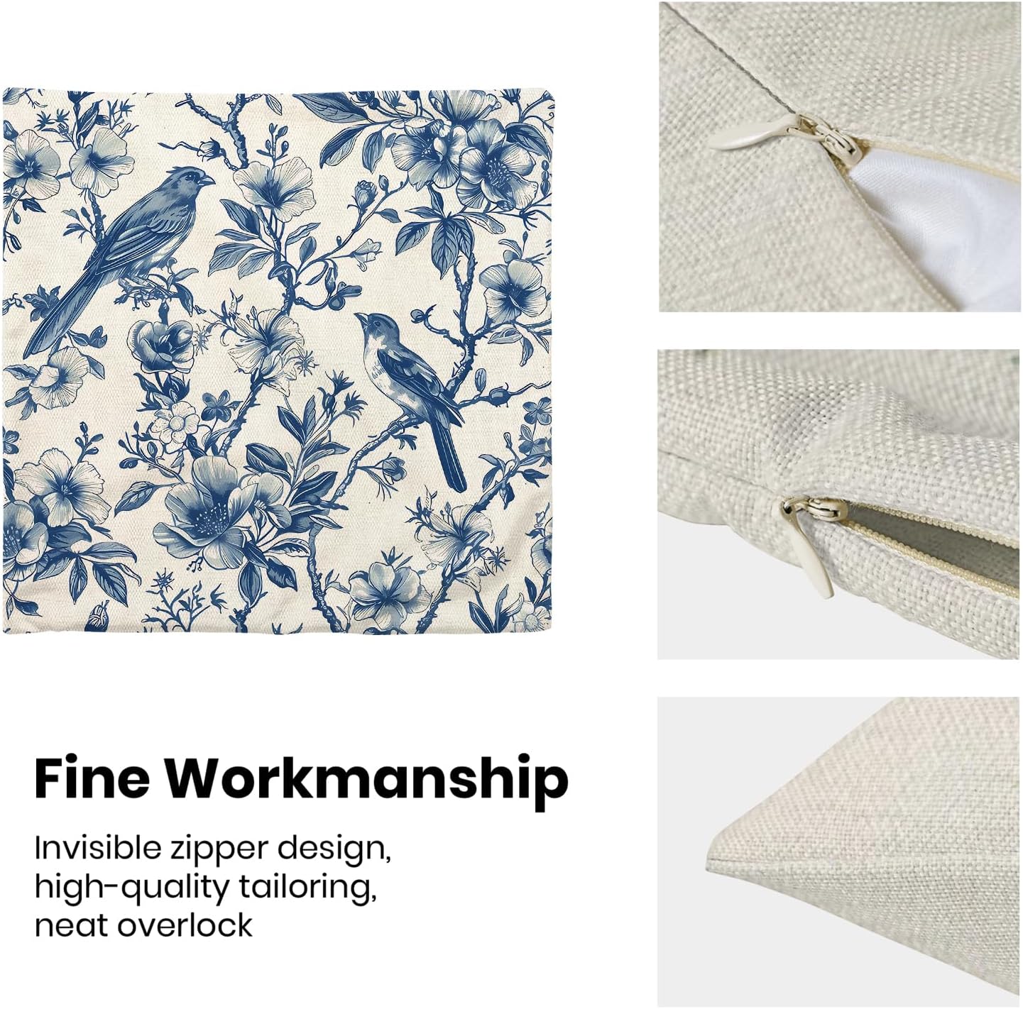 • 【Square Pillow Covers Size】 Chinoiserie flower birds pillow case set includes 2 pcs of farmhouse couch pillow covers (NO Pillow). Home decor farmhouse pillow covers measures 18x18 inch/ 45x45 cm. All the floral decor throw pillow covers have a hidden zipper. It is easy to insert or remove the pillow core to replace the spring pillowcase. Easy to clean and wash, sturdy and not easy to damage.