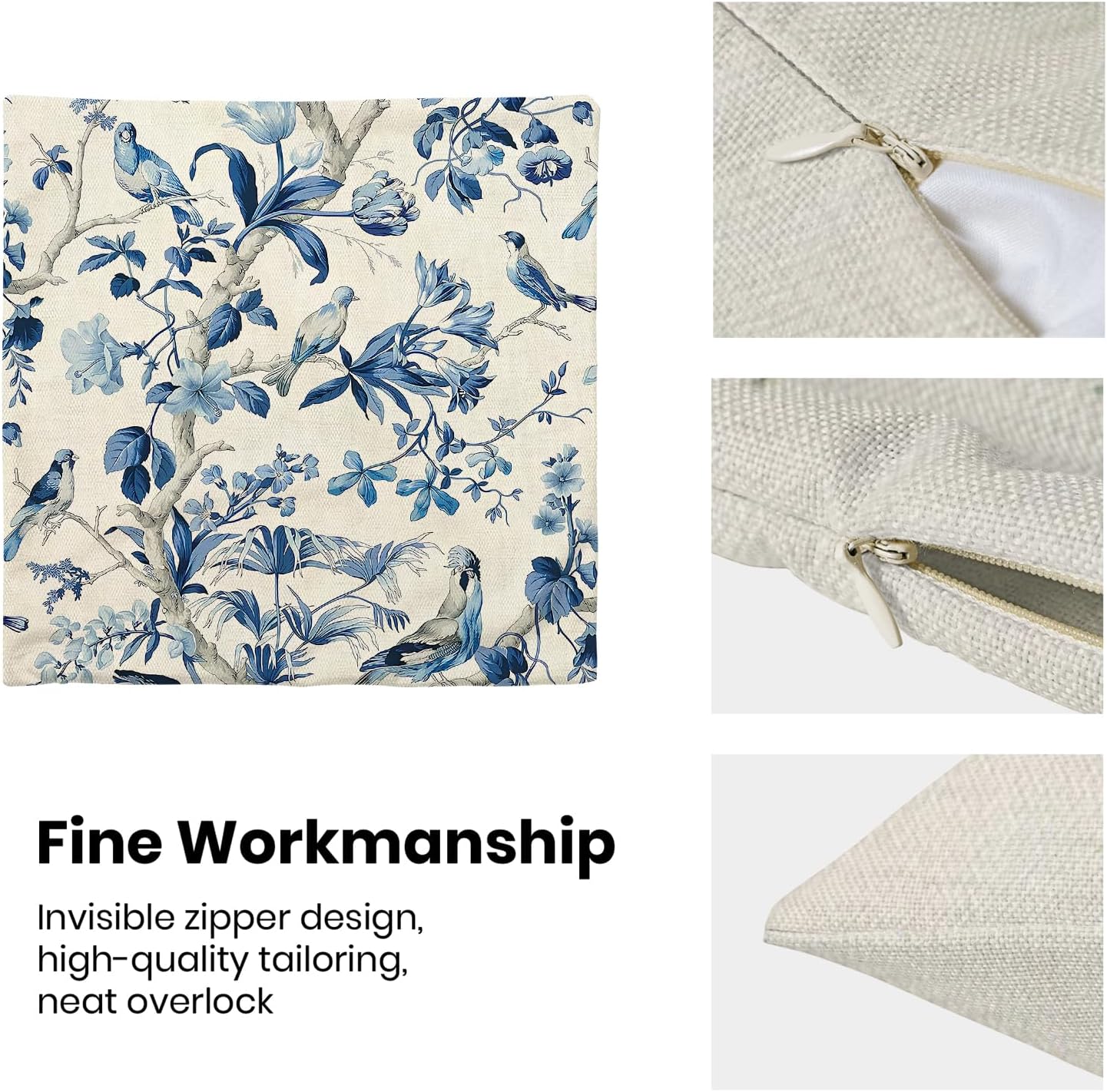 • 【Spring Pillow Covers】 Our Chinoiserie floral throw pillow covers 18x18 inch are made of excellent breathable polyester cotton fabric. The navy blue floral decorative pillow covers is sturdy, soft and skin-friendly. The outdoor pillow covers adopt exquisite edging technology and four sides of our floral pillow covers are sewn firmly, which is not easy to open the line.