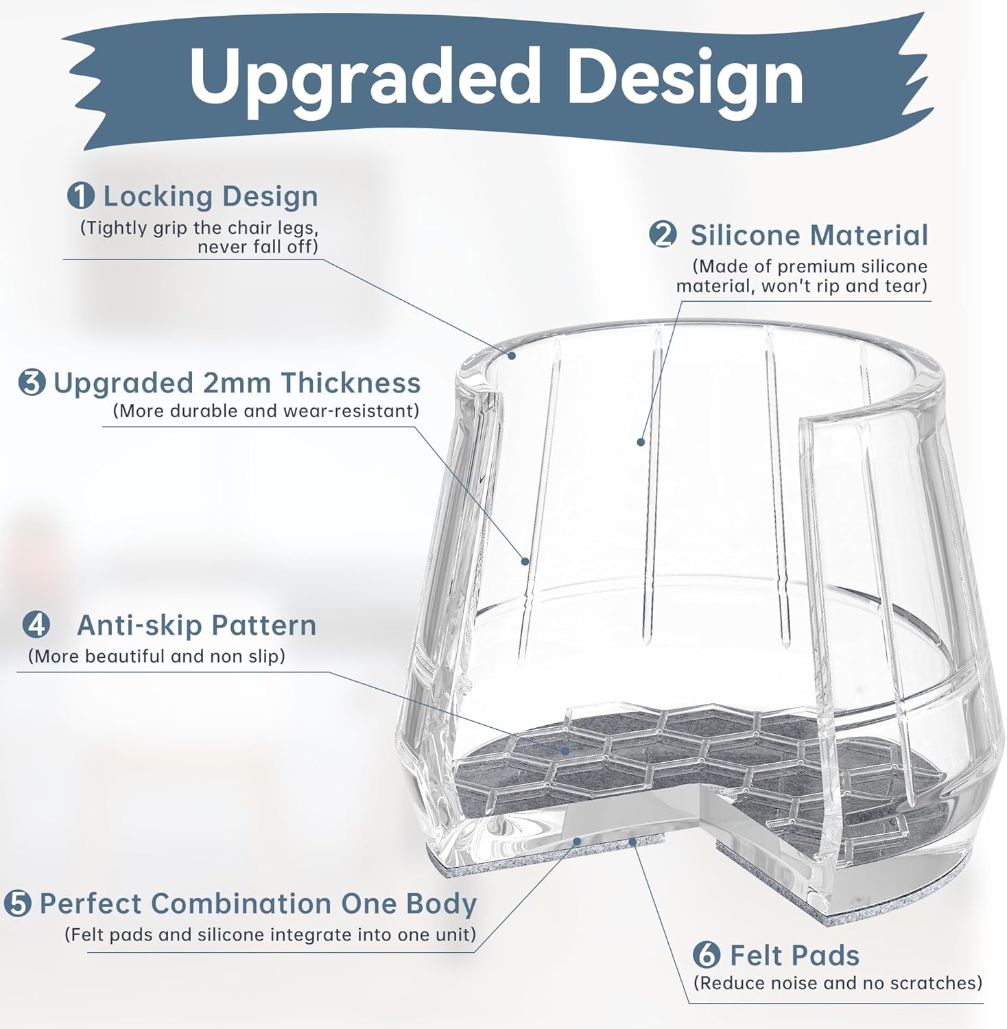 • ✅【Comprehensive Improvement】The chair leg floor protectors use special technology to combine the felt and silicone into one inseparable piece, which prevent the felt pad from falling off during use. We chose the premium quality silicone material which bonds the felt pad better, and won't tear easily when stretched.