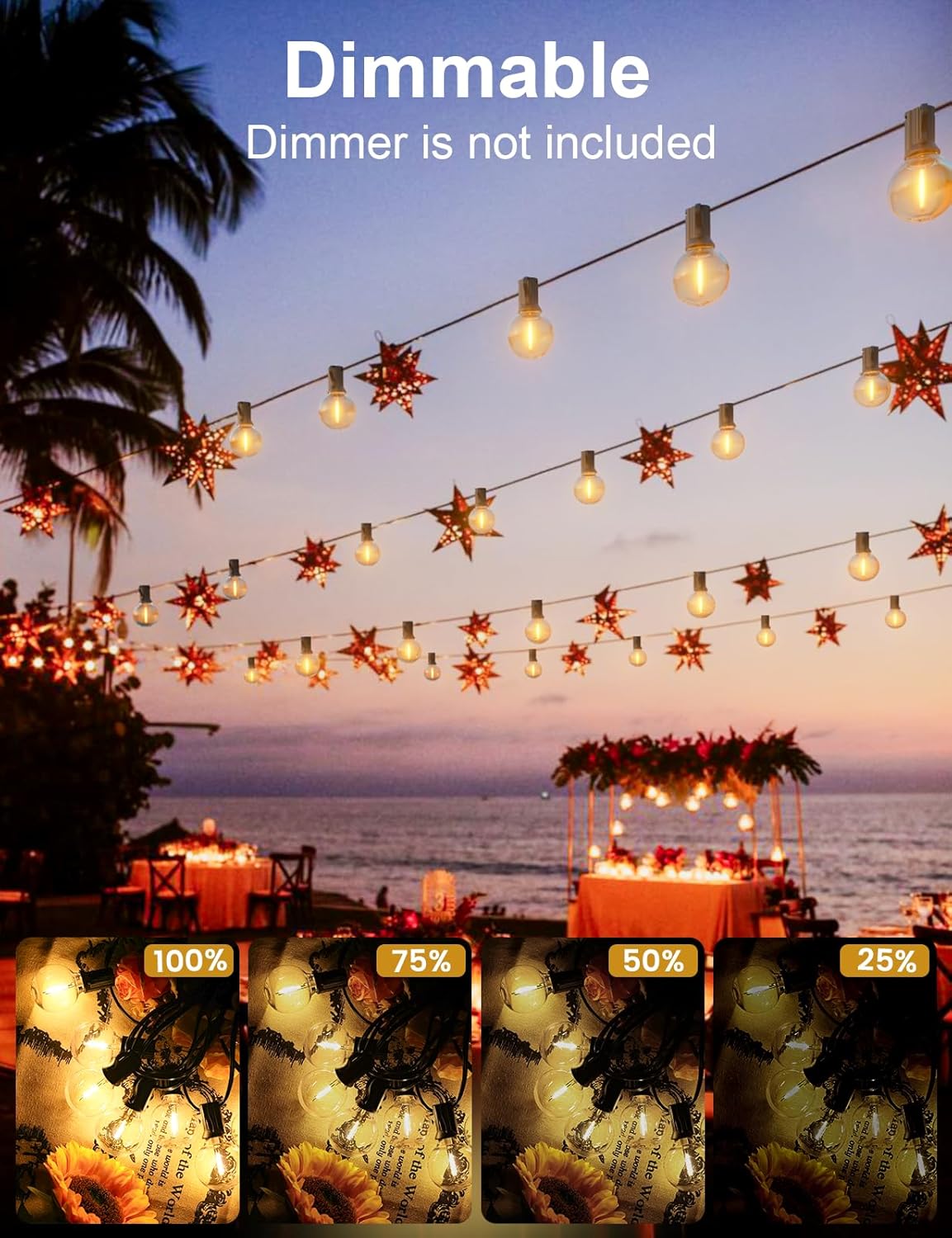 • Dimming Compatibility:Our outdoor string lights are compatible with most dimmers (dimmer not included), allowing for added lighting flexibility and a soft, warm atmosphere. They are an excellent choice for creating your outdoor oasis, where you can relax after a busy day or enjoy a cozy gathering with friends.