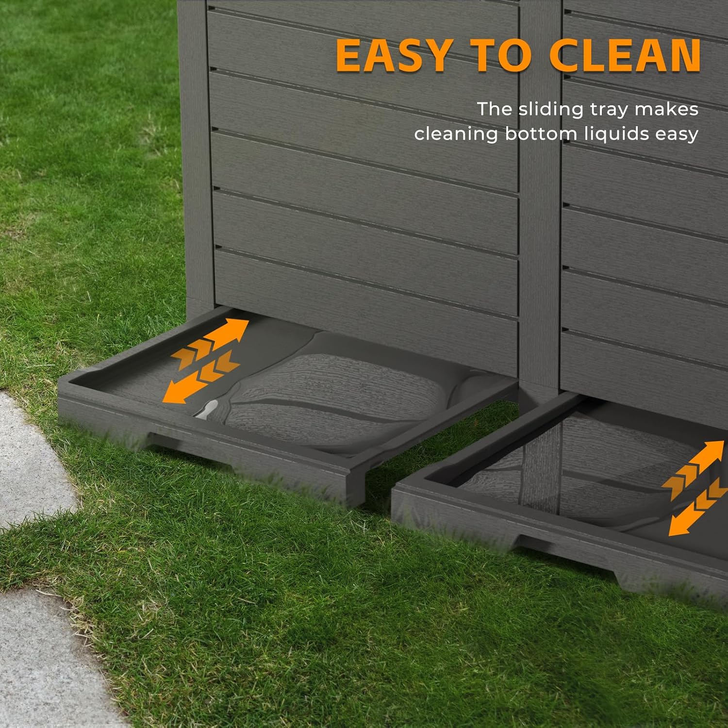 • Dual-Lid Design to Prevent Animal Entry: The innovative dual-lid design hides unsightly trash bags, keeping your yard tidy. The outer lid can be easily opened and closed with one hand via a lock, effectively preventing animals from entering. The inner lid secures the trash bag in place within the slots. This design ensures cleanliness and protects against animal interference.