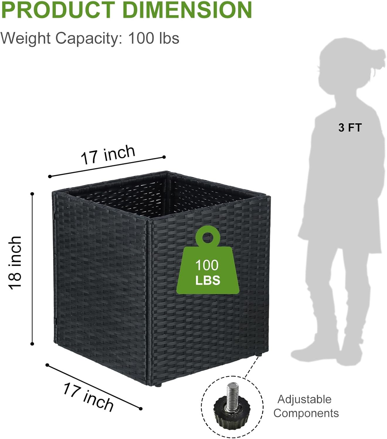 • Removable Liner: Each wicker planter in this set comes with a nonwoven fabric liner (measures 16 x 16 x 17 inch) that separates wicker from the soil. Keep planter in excellent condition to prevent weeds and other invasive species from interfering with plant growth