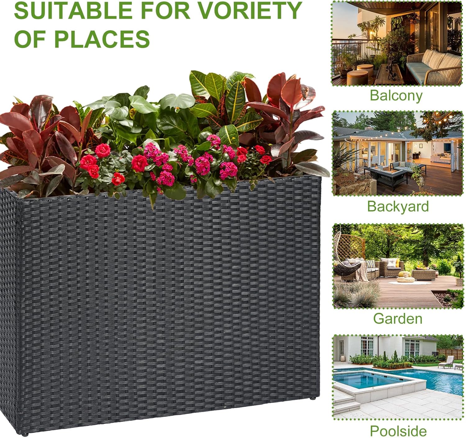• Removable Liner: Each wicker planter comes with a nonwoven fabric liner (measures 37 x 10 x 10 inch) that separates wicker from the soil. Keep planter in excellent condition to prevent weeds and other invasive species from interfering with plant growth