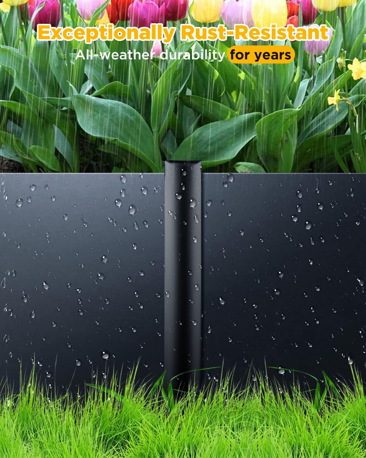 • Robust High Carbon Steel: Our landscape stakes are made from thickened 2mm high carbon steel for enhanced strength and toughness. Even under heavy hammer strikes, our garden stakes resist bending or breaking