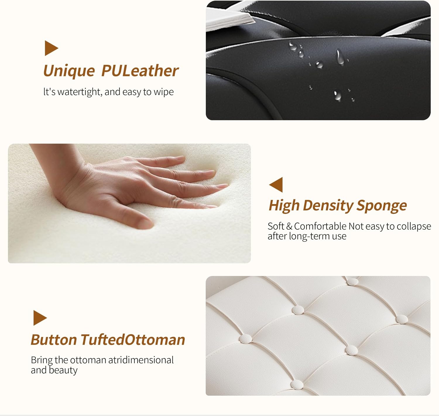 • 【 Widely used 】 This bench ottoman is usually put at the end of bed in bedroom,as a end bed bench, It can be used for sitting or for placing feet while lying in bed.The bed bench can also be used as a footstool, fashion seat, shoe stool, window bench, or pet bed. Light weight, but firm and comfy, it can be moved easily to living room, bedroom, office, fashion closet, kid's playroom, den, studio apartment.Color that is elegent and classic, it adds a visual interest in your room