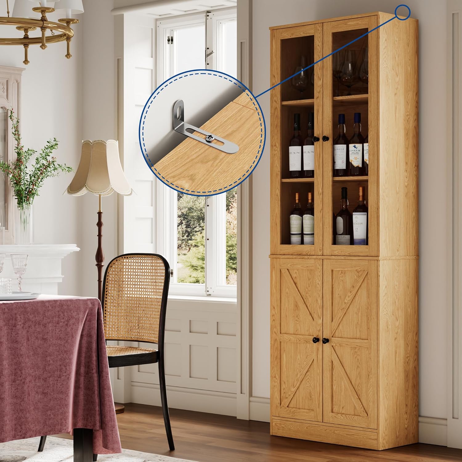 • 71" Tall Bookcase with Glass Doors: Crafted from high-quality 0.6'' thick particleboard, this 5 tier bookcase is not only durable but also waterproof and scratch-resistant, ensuring it remains in top condition even with everyday use. The wood grain finish gives it a sleek and modern look that complements any decor. The built-in anti-tipping iron plate enhances stability, so you can confidently store heavy books, files, and decorative items without worrying about wobbling or tipping.