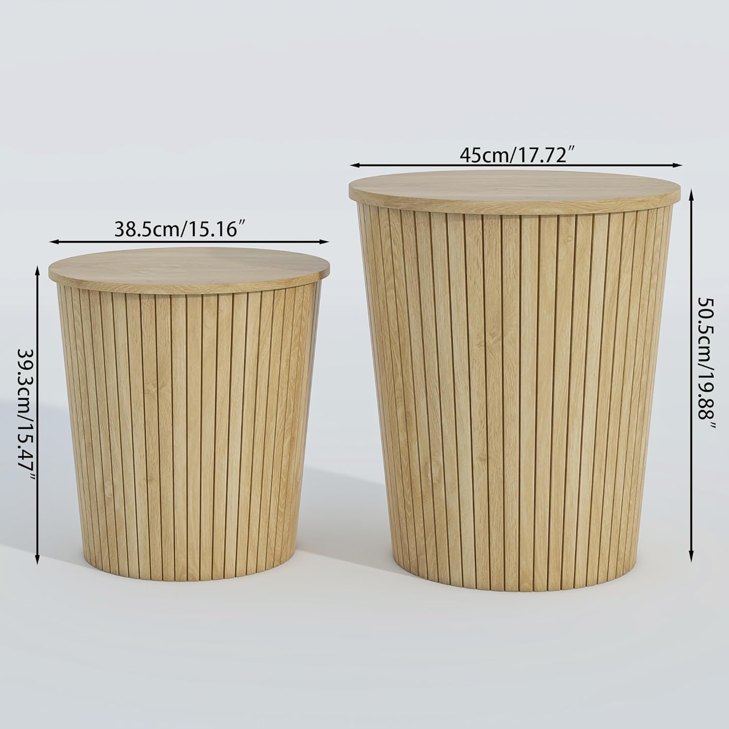 • Multifunctional Living Room Table: Round Coffee Table with Storage includes 2 round tables. The large coffee table measures 17.72''W x 19.88''H, and the small coffee table measures 15.16''W x 15.47''H. The round coffee table is suitable for holding drinks and snacks or placing your favorite books, cushions, blankets, pillows, and can be used as a coffee table, nightstand, side table or end table