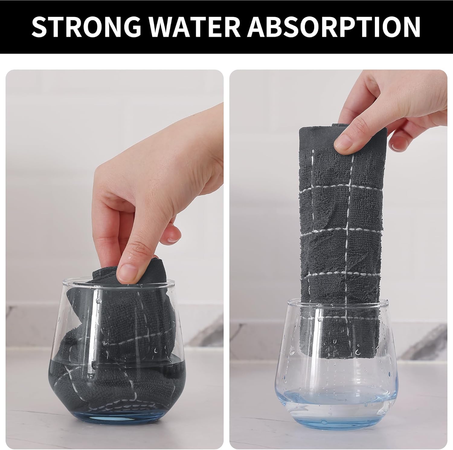 • Super Absorbent: These dish towels are designed with upgraded terry structure, are lightweight, highly absorbent, and dry quickly. They can easily absorb plenty of liquid or wipe oil stains
