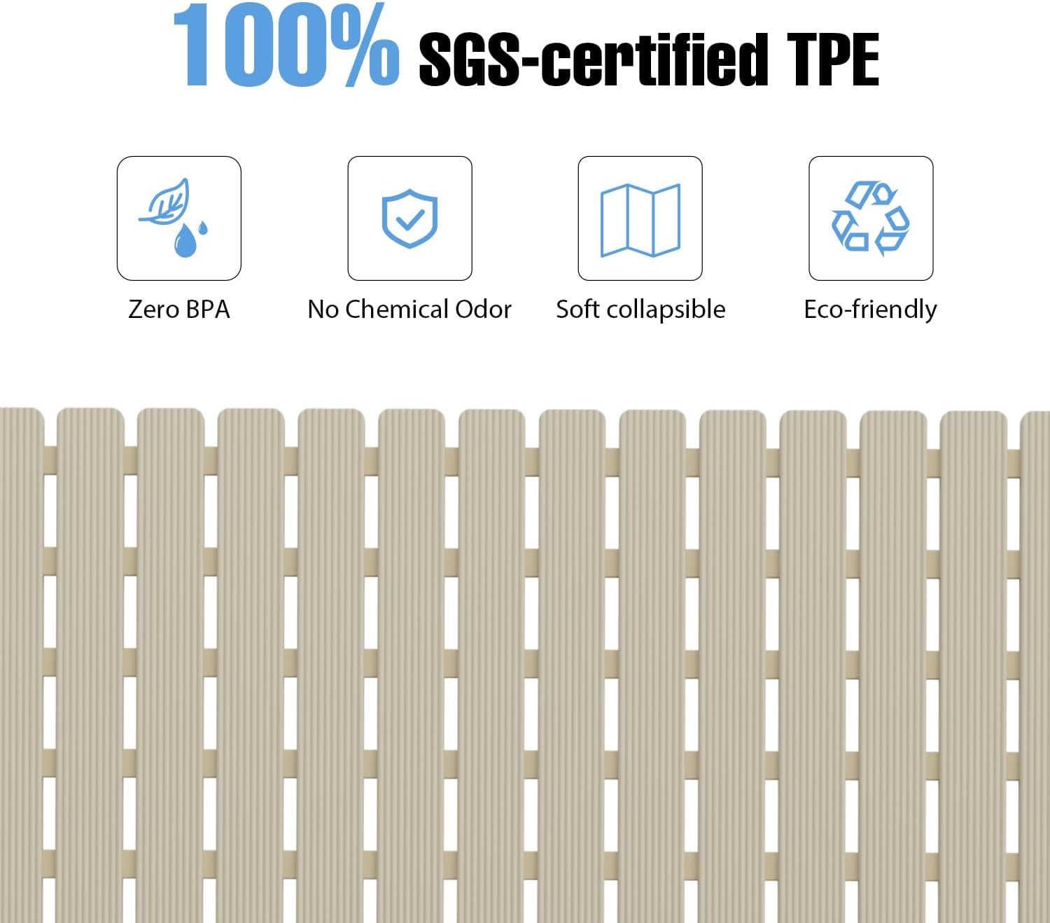 • SGS-Certified TPE: This non-slip bath mat for shower/tub is crafted with 100% SGS-certified TPE (Test Report NO.CANEC25008026405), featuring Zero BPA & Chemical Odor,trusted by 12,000+ Families for Baby Bath Time Safety.