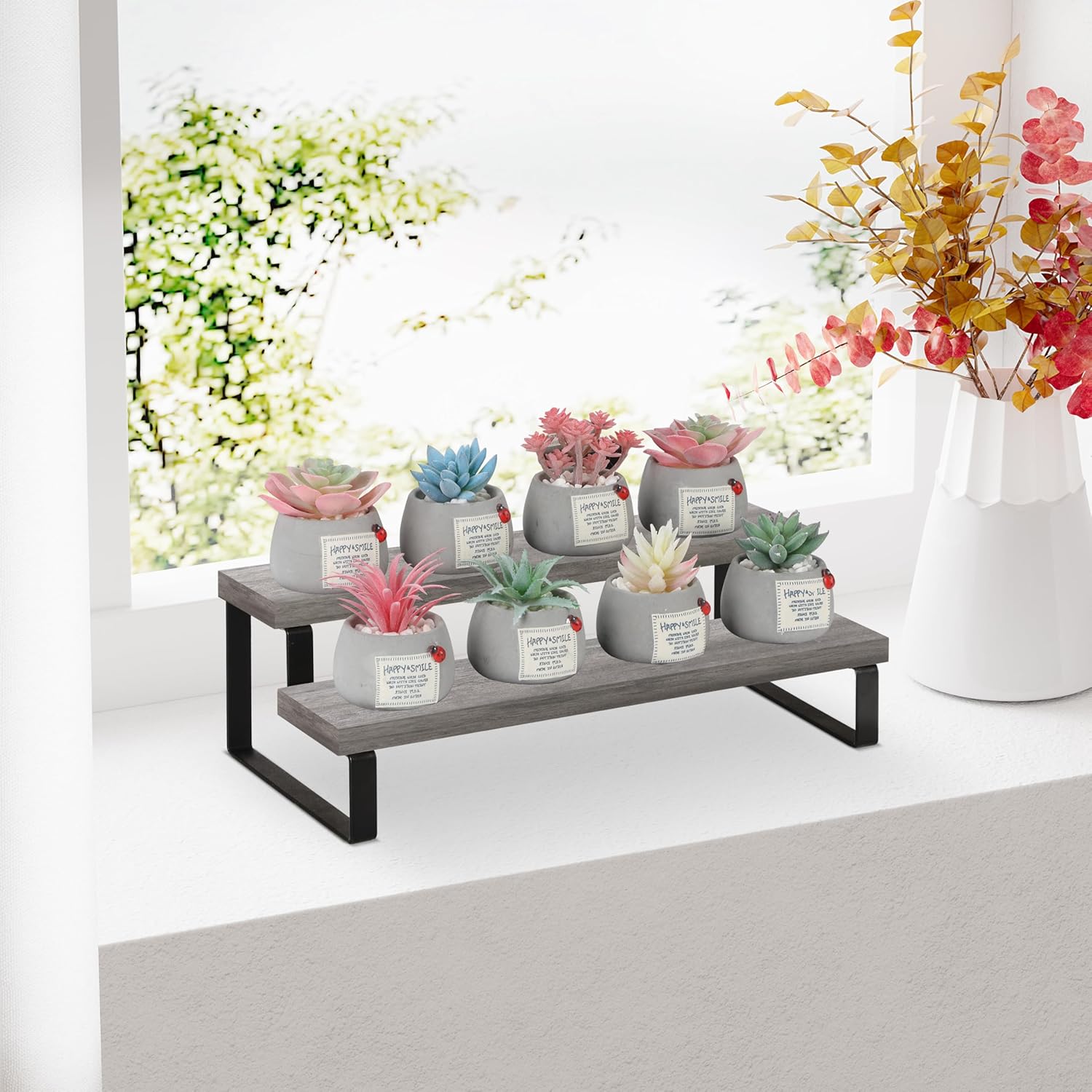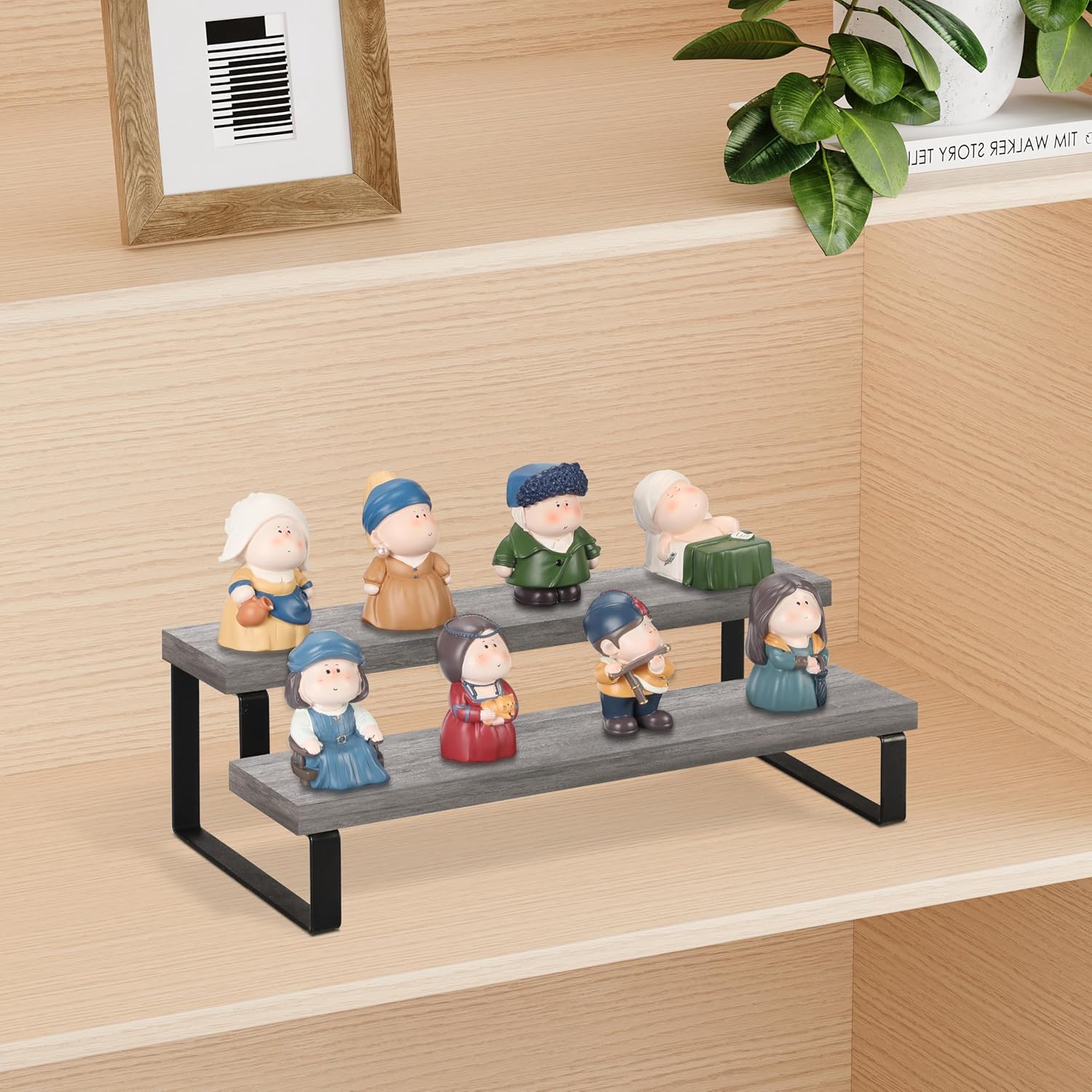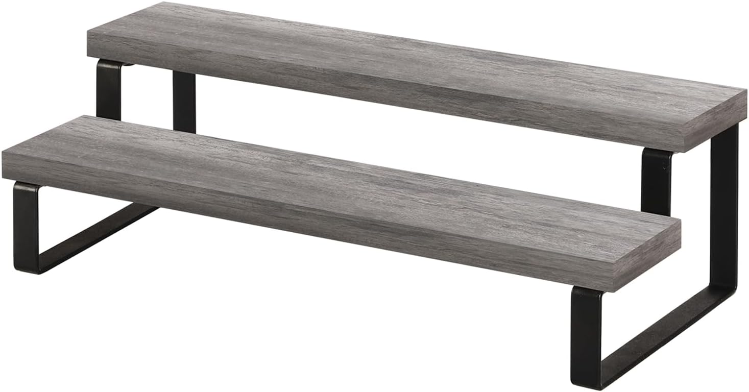 YINMIT Wooden Display Riser Stand, Tiered Perfume and Cologne Organizer Stand, 2 Tier Spice Rack Organizer, Rustic Display Shelf for Candles (2 Tier,Grey)