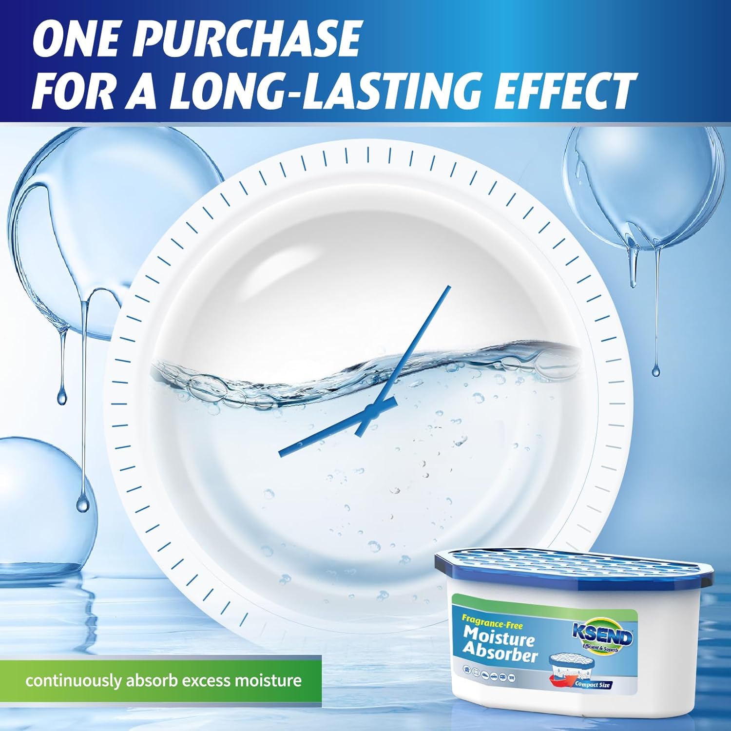 • LEAKPROOF DESIGN: Ksend moisture absorbers for rooms are equipped with a unique moisture-locking paper design. This innovative feature ensures that even if the boxes are accidentally overturned, the collected water will remain securely contained. You can confidently place them anywhere without worrying about water leakage.