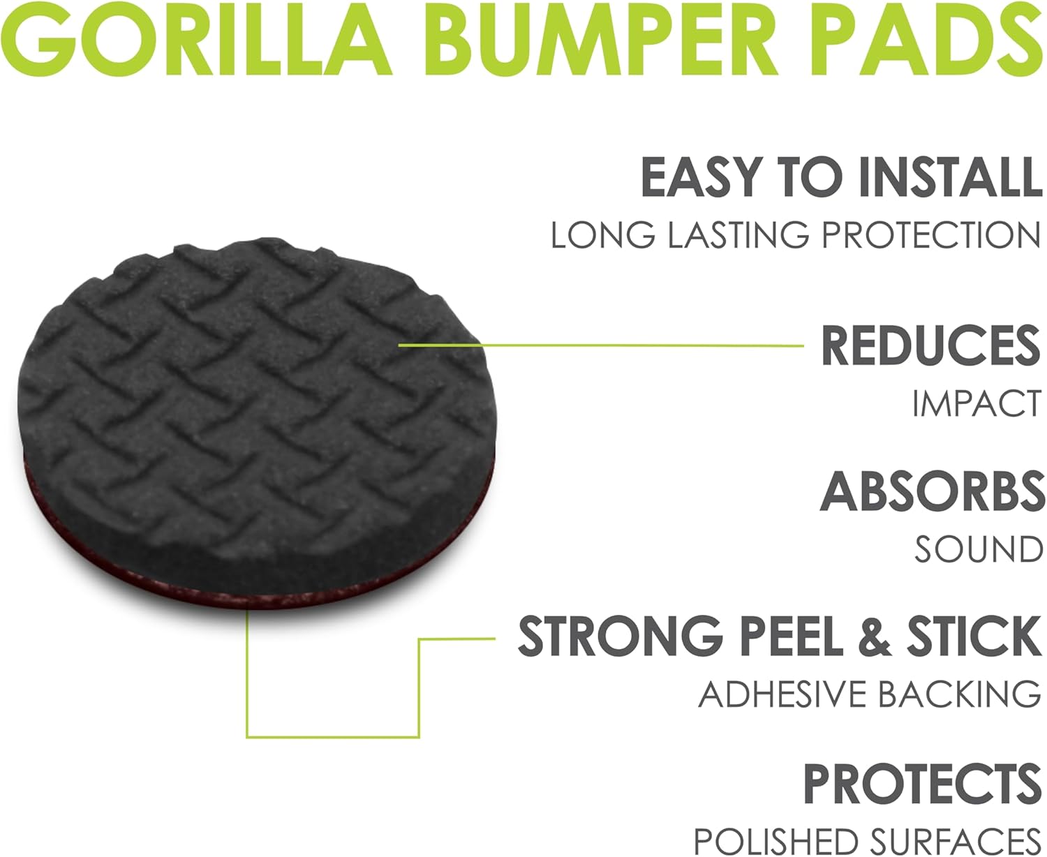 • Rubber felt blend reduces more noise – Slipstick Gorillapad rubber stoppers feature specially designed two-layer rubber felt design that provides extra cushioning and noise reduction than same size bumpers made of different materials. Specially designed for use as bumper pads, these ½” rubber pads can also be used to prevent unwanted movement of small items such as picture frames, cutting boards, small décor, and more (not designed for use under furniture).