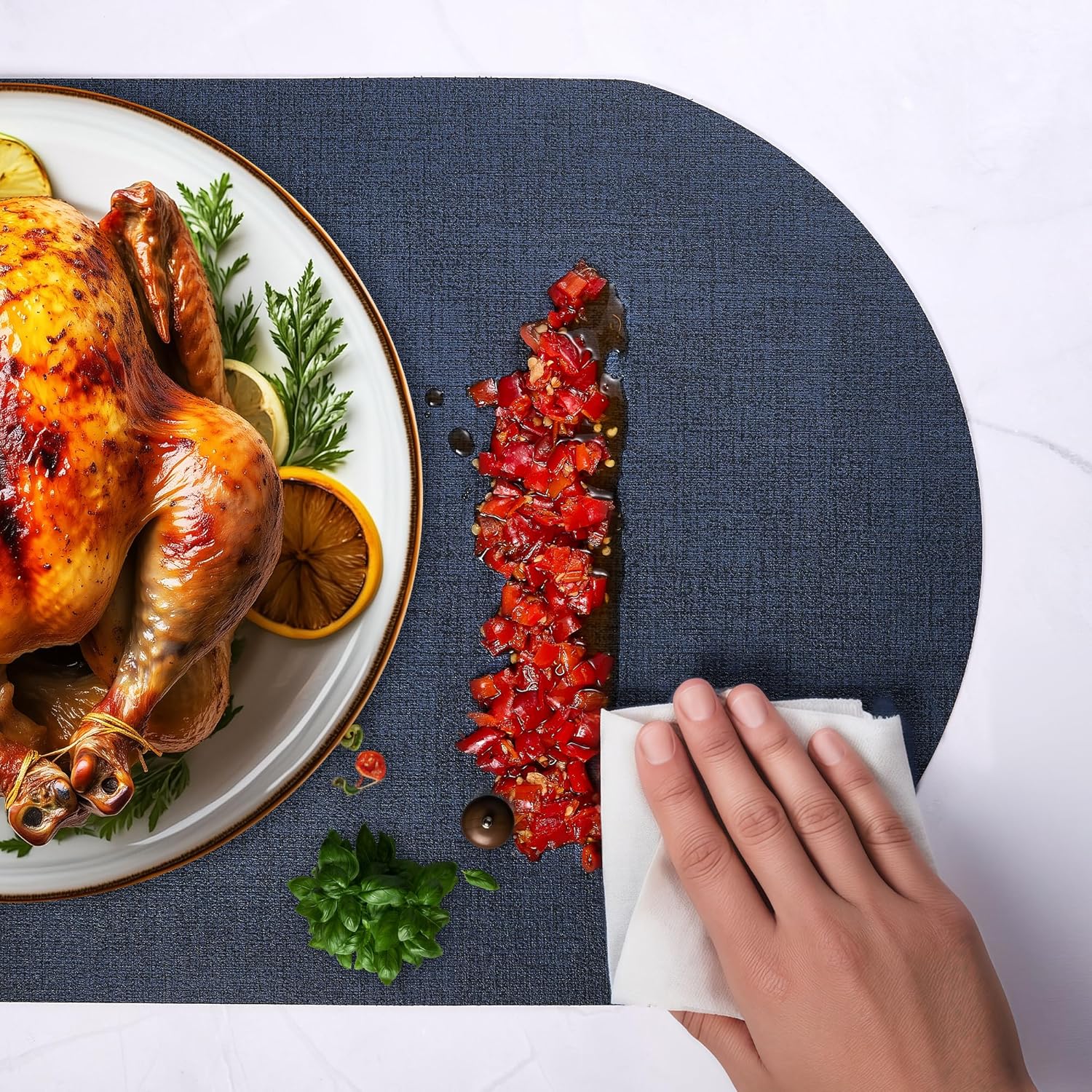 DOLOPL Placemats Set of 6, Oval Large Place Mats for Kitchen Dining Room Table Decorations, Navy Blue Faux Leather Anti Slip Waterproof Dining Table Place Mats for Indoor & Outdoor Use(13.8"x21.6")