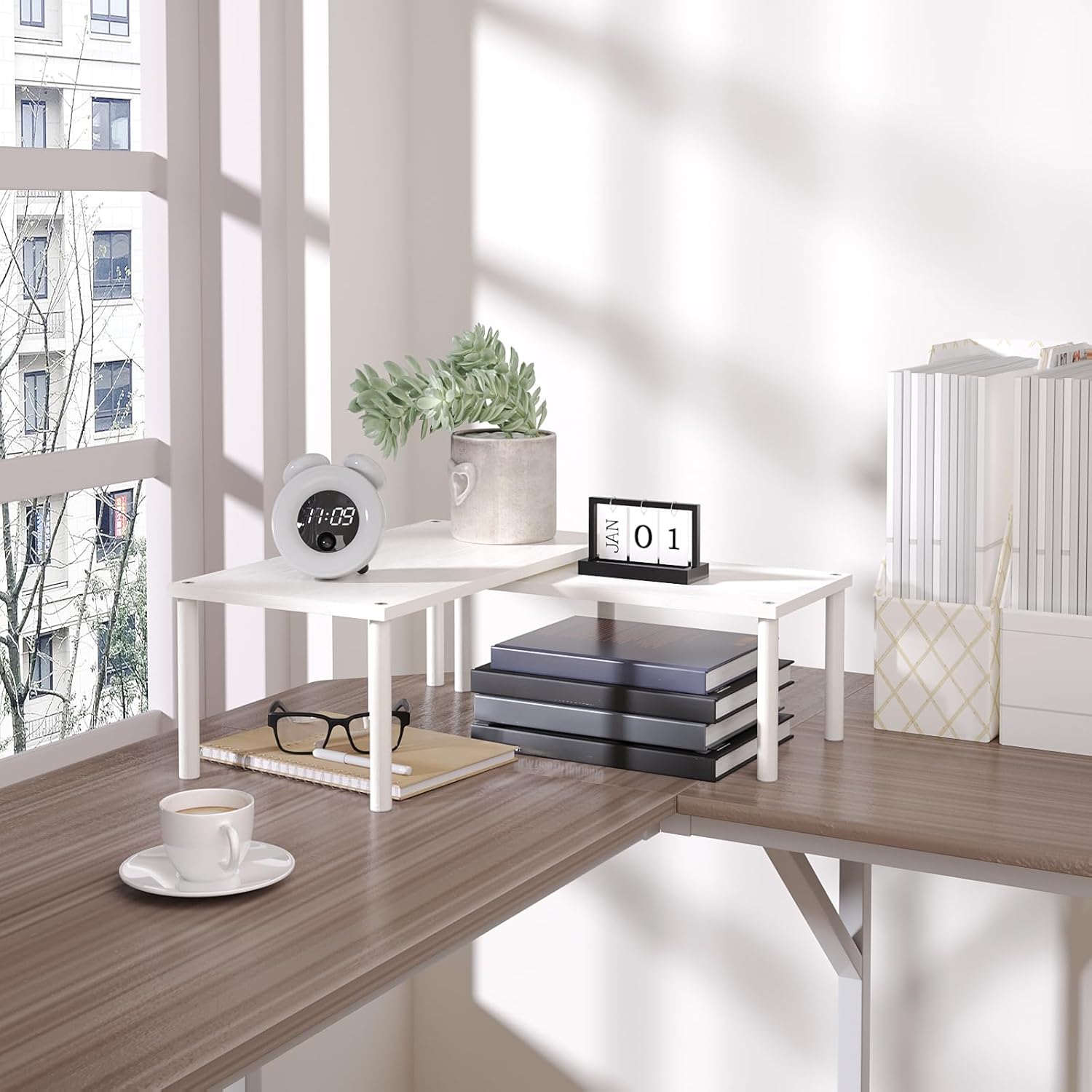 Cabinet Organizer Shelf(Set of 2),Kitchen Counter Shelves,Bamboo Spice Rack Countertop and Cabinet,Stackable Expandable,Large(White)