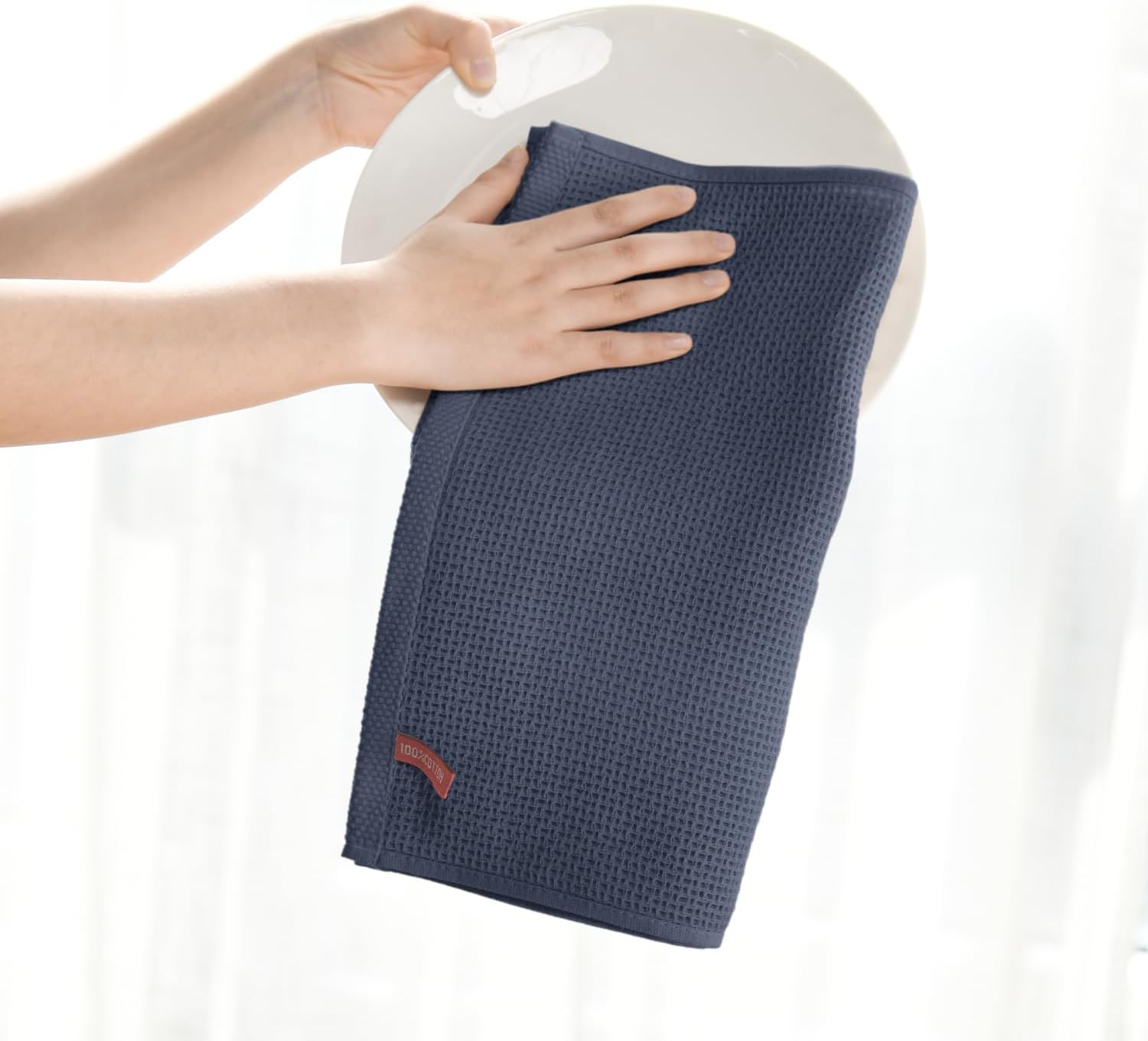 • COTTON DISH CLOTHS: 100% cotton waffle weave dishcloths that feel soft and comfortable. Unique honeycombs design make it have durability. And it softens with each wash, so these dish towels won't scratch your delicate cookware, plates and pans.