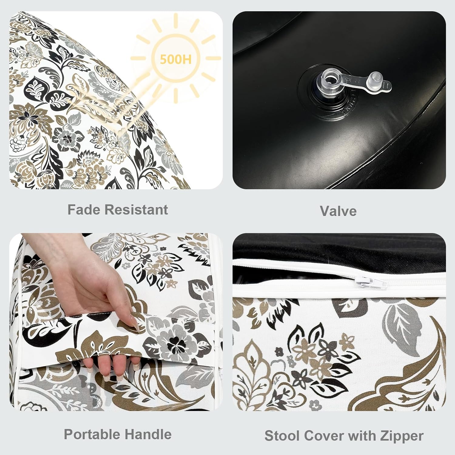 • SAFETY COMES FIRST: 250 micrometer PVC liner ensures lasting durability against tears and punctures; outdoor ottoman is light weighted enough for children to carry, but can also bear up to 100kg. It brings you comfort and sense of safety even if an adult sit on it.