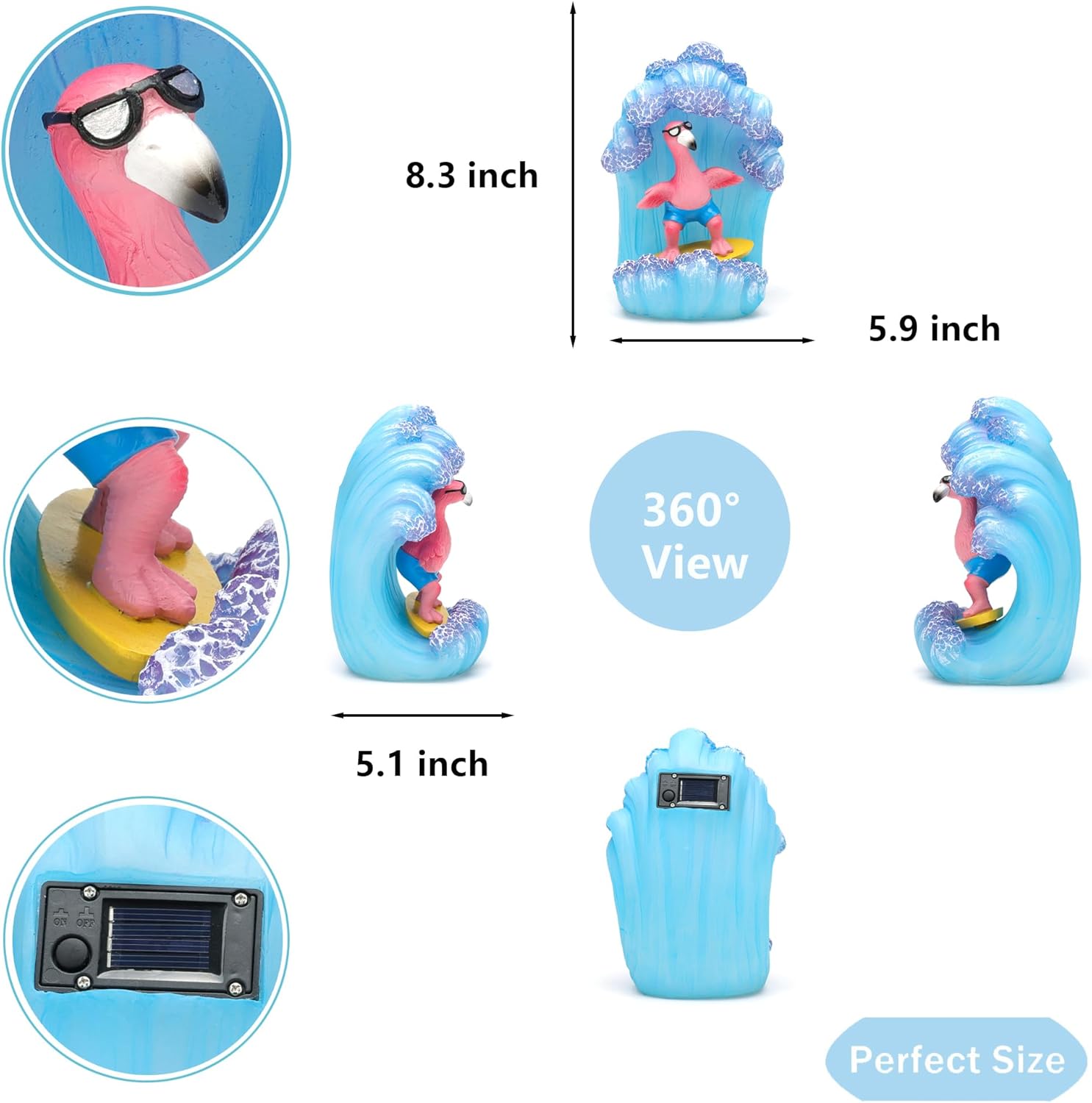 Pink Flamingos for Yard-Garden Statues Solar Decor - Surfing Hawaii Beach Yard Art Light up Sea Wave Outdoor Decor for Patio Lawn Yard