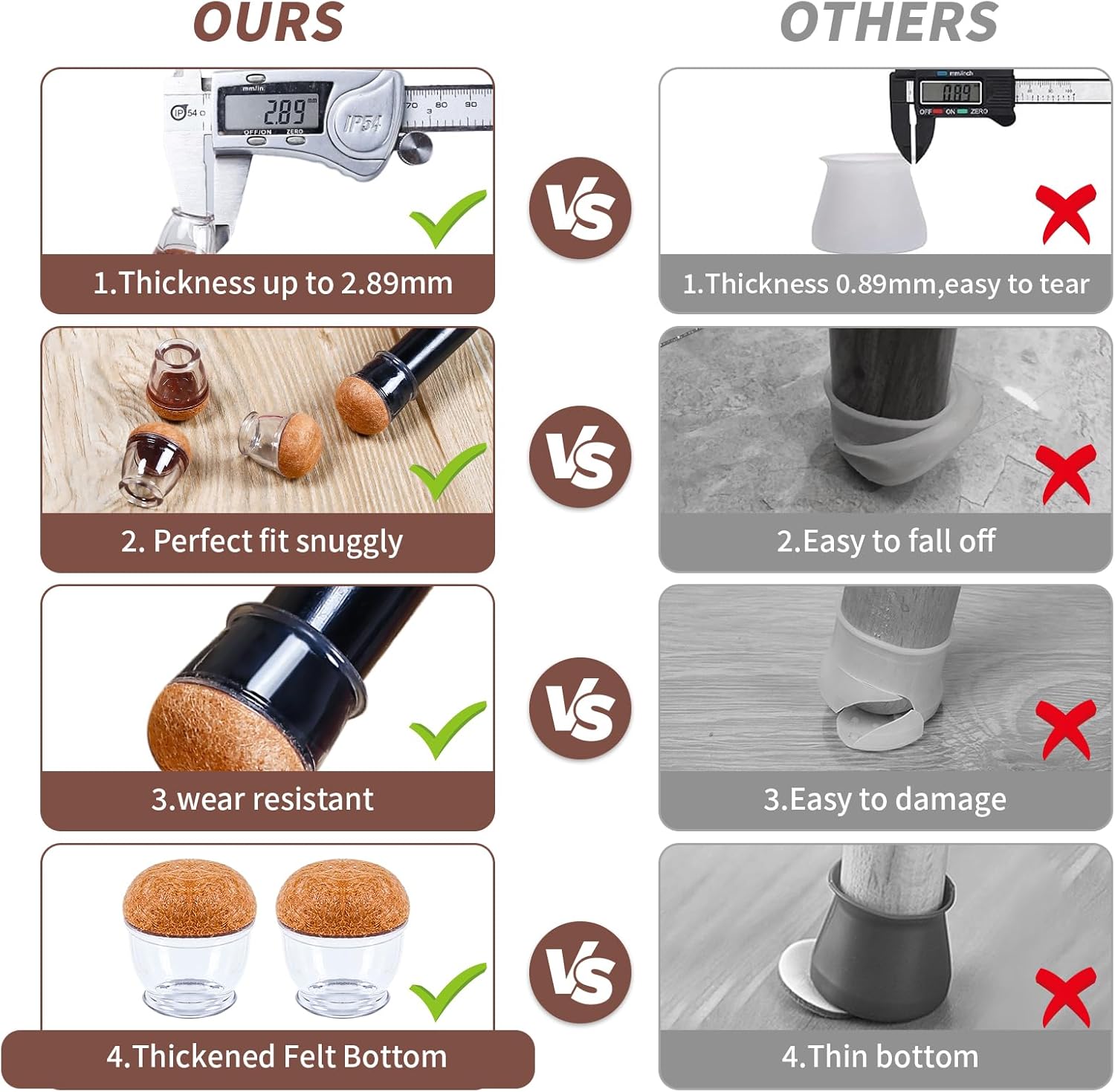 • ☛【360°Thickened Wrapped】- The 0.2 inches (5mm) upgraded thickened bottom felt more wear-resistant, lasting much longer. These silicone chair leg floor protectors protect your hardwood, ceramic tile and linoleum floors from marring and scuffs.