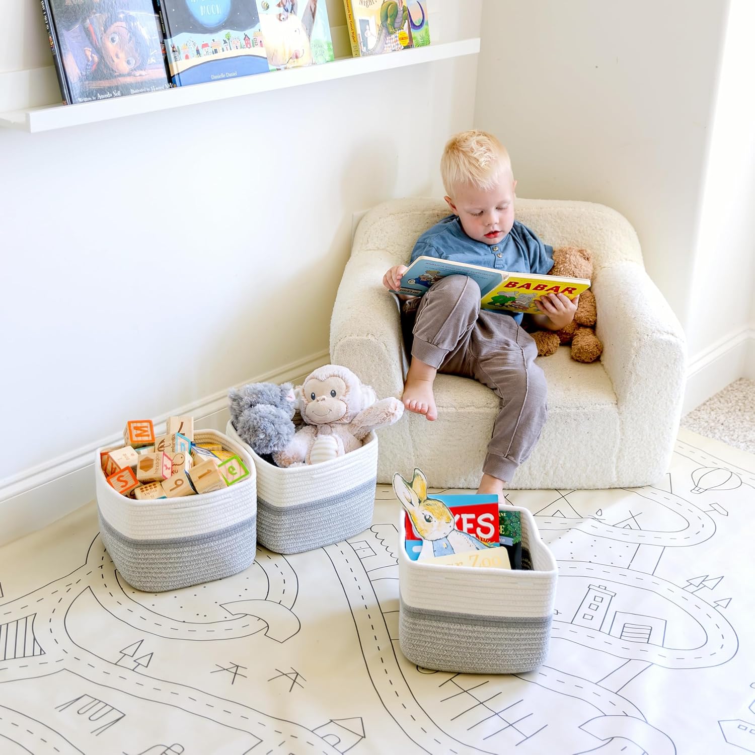 • Safe, Natural Cotton Organizer Bins: Crafted from the highest quality material in the market, our storage bins are oh-so-sturdy (and cute) and ready to take on little humans. They’re 100% safe, so you can rest easy if teething toddlers take a nibble.