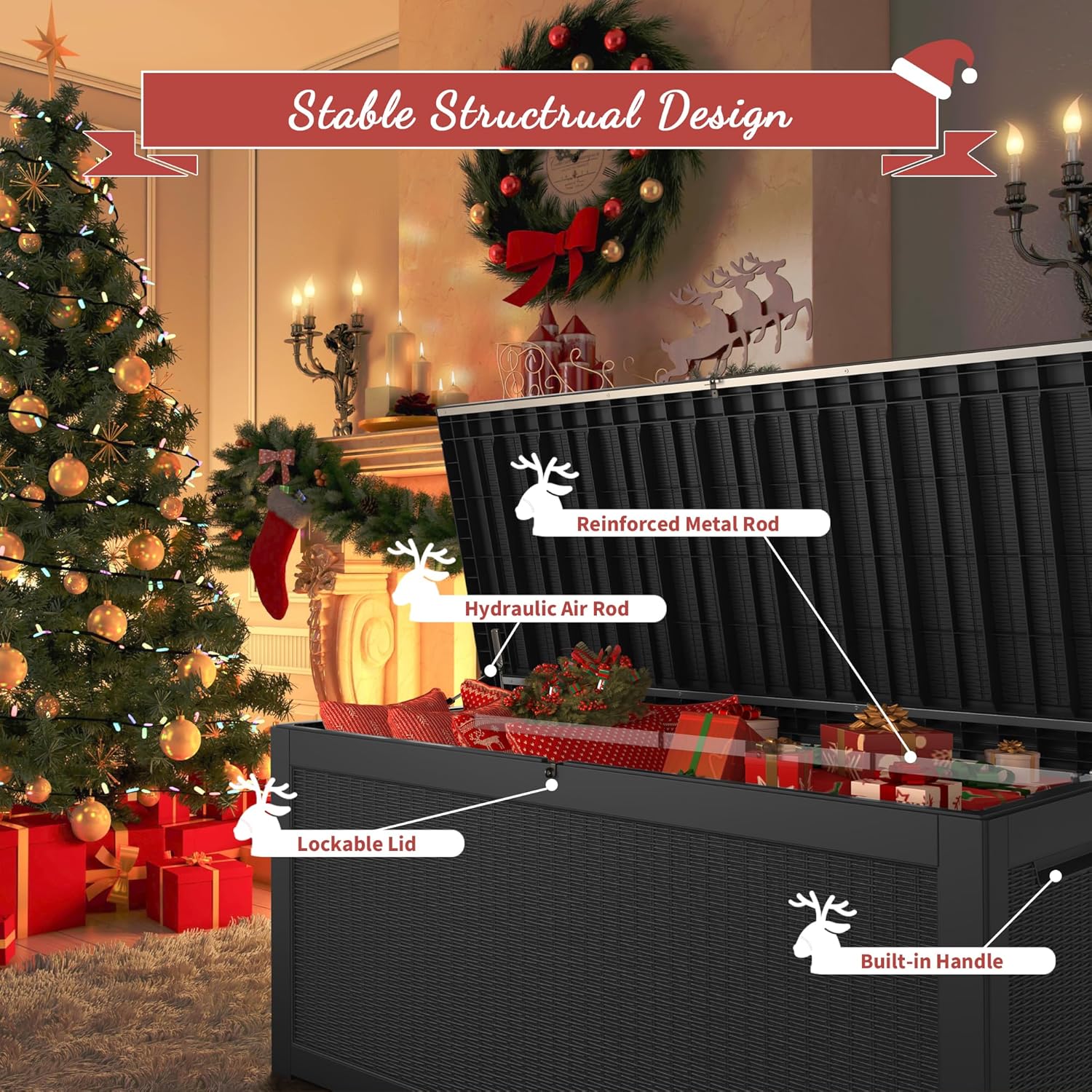 • 🎅【Versatile Multi-Functional Design】Not just for storage, this large garden box doubles as a bench with a weight capacity of up to 660 lbs. It’s perfect for organizing your space while providing extra seating for family or guests, making it an excellent addition to your outdoor setup.