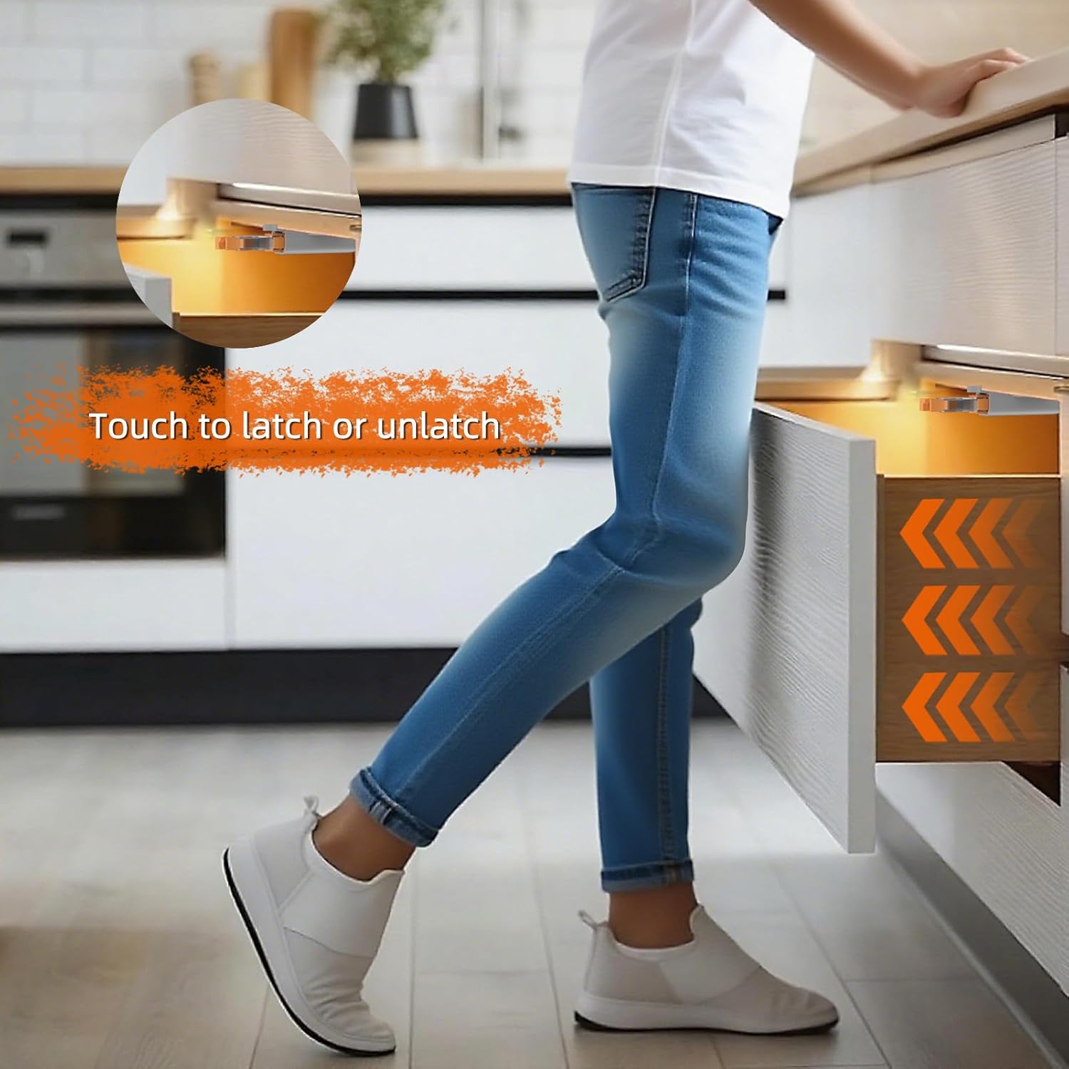 • Convenient to Use: Think about how many times you've had your hands full and needed quick access to open the cabinet door to take things? Effortlessly open and close your cabinets with this heavy duty cabinet push latch, simply press the door to latch or unlatch, eliminating the need for handles or knobs. Ideal for cabinet doors and drawers without handles in home, RV, boat, and any other places.