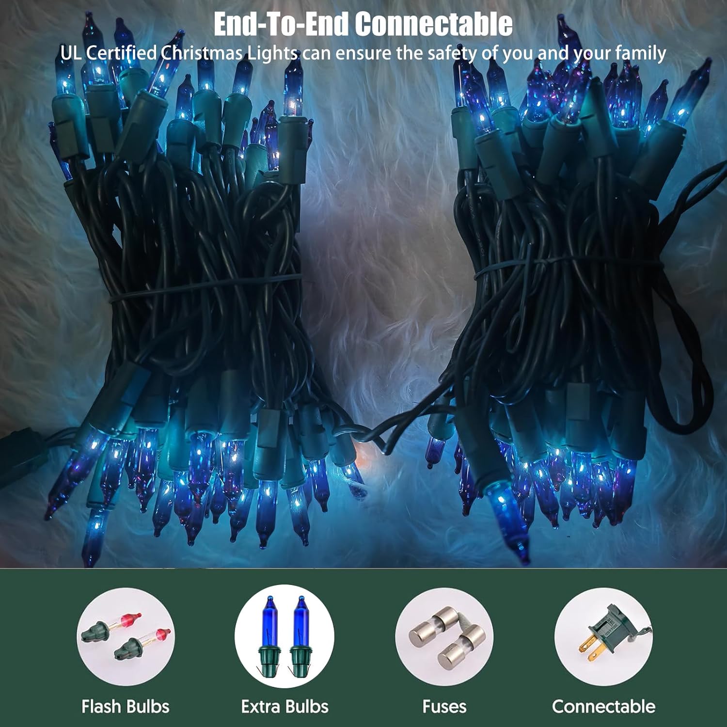 • Connectable Christmas Lights String: Each Christmas light has an end-to-end connector,can connect up to 5 of these string lights end to end for a total of 105 feet of lighted length.