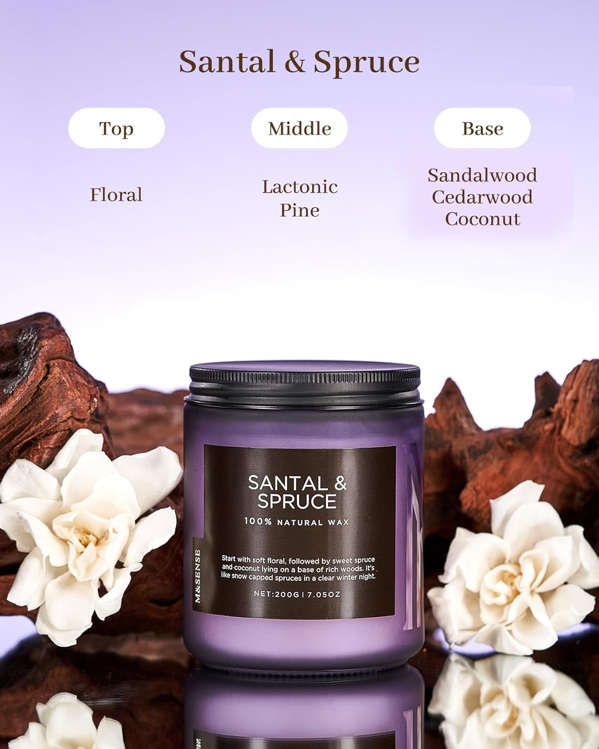 M&SENSE Sweet Spruce Scented Candle, Natural Soy Wax Winter Candle Cotton Wick 7.05oz Up to 50 Hours Tree Scented for Holiday Housewarming Gifts for Friends Family