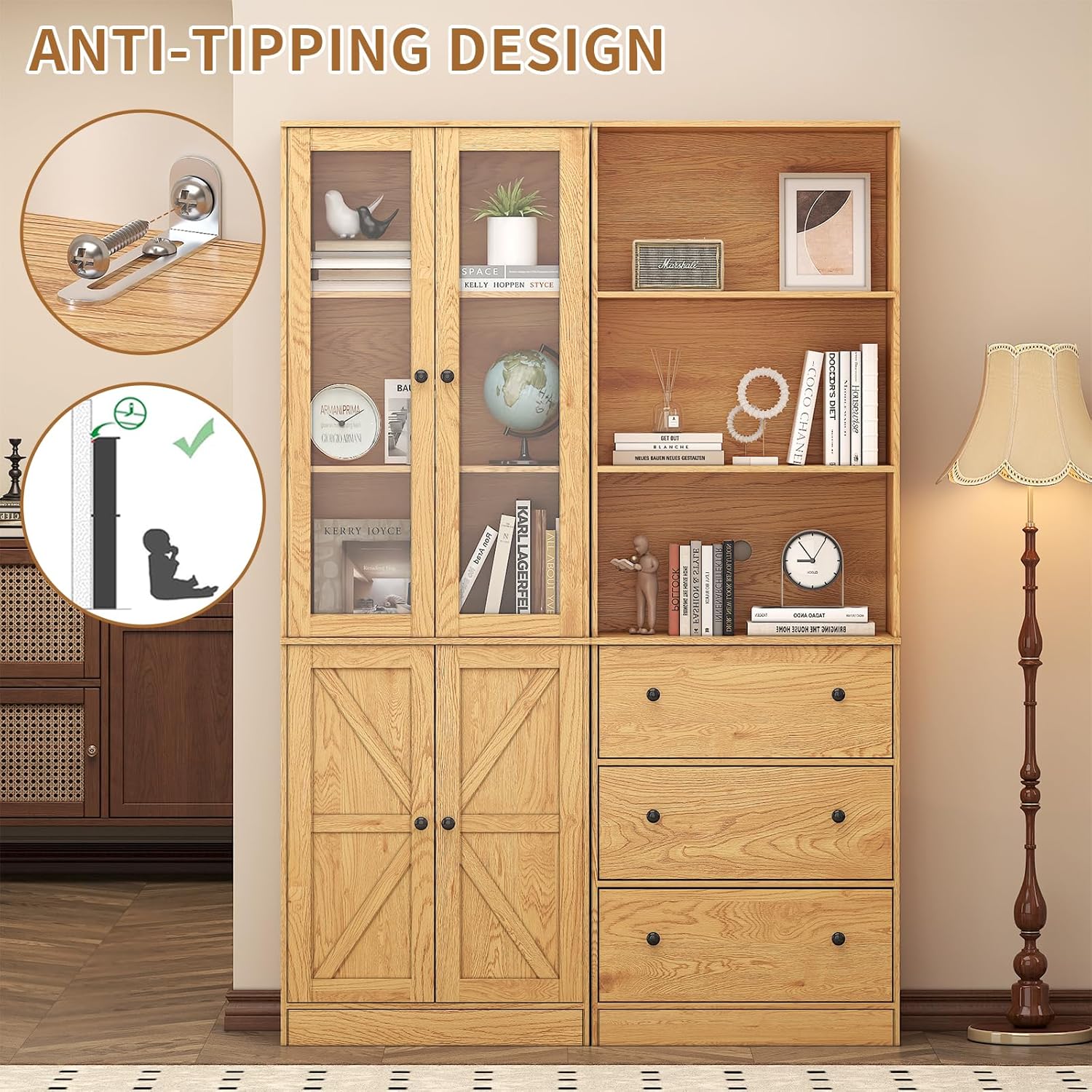 • 【Multifunctional Use】- The bookshelf with storage is designed with wood grain style and minimalist aesthetic, it seamlessly fits into any decor style. These wooden bookcases can be used as display cabinets, office bookshelves, library bookcass, kitchen pantry cabinets, etc