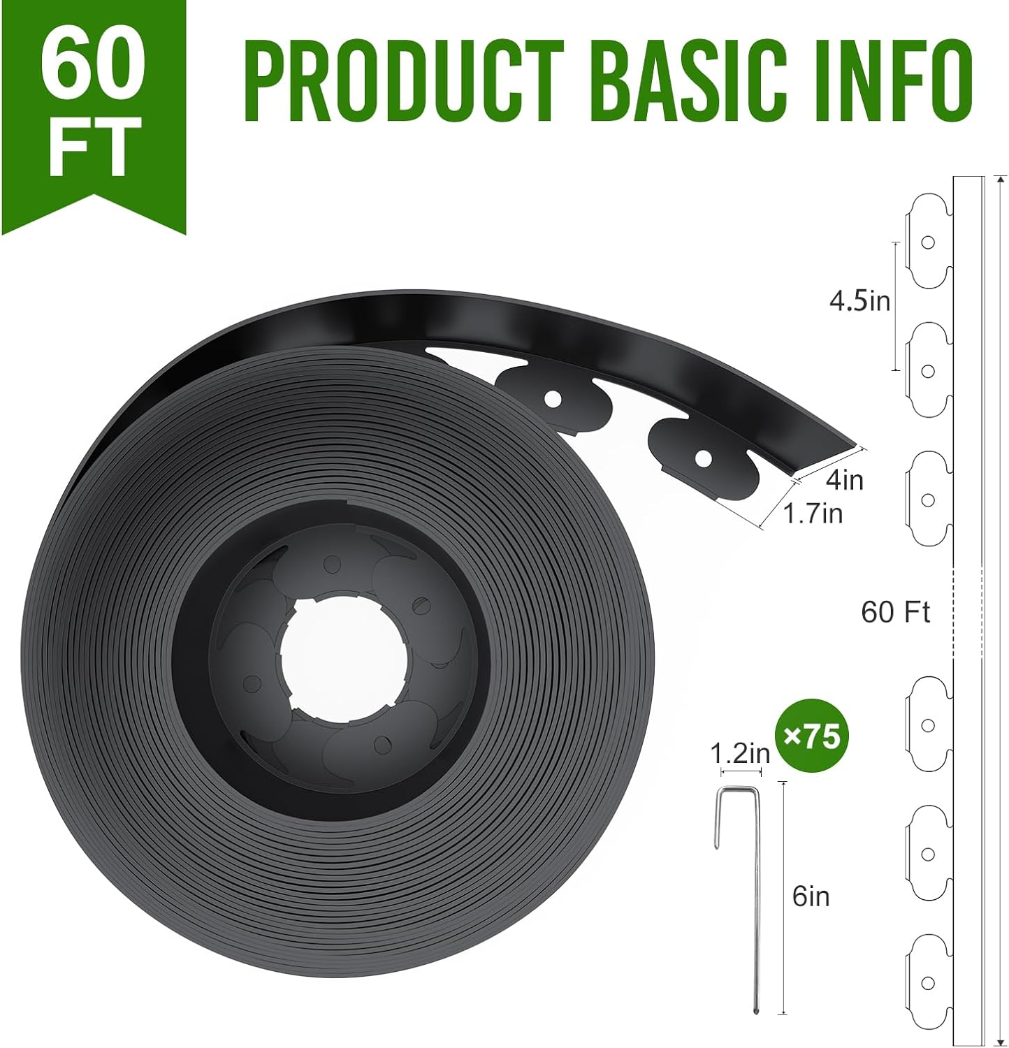 • What You Get: Landscape edging kit included a 60ft edging coil 4 inch tall, 75Pcs metal staples. More staples help you design more professional landscape
