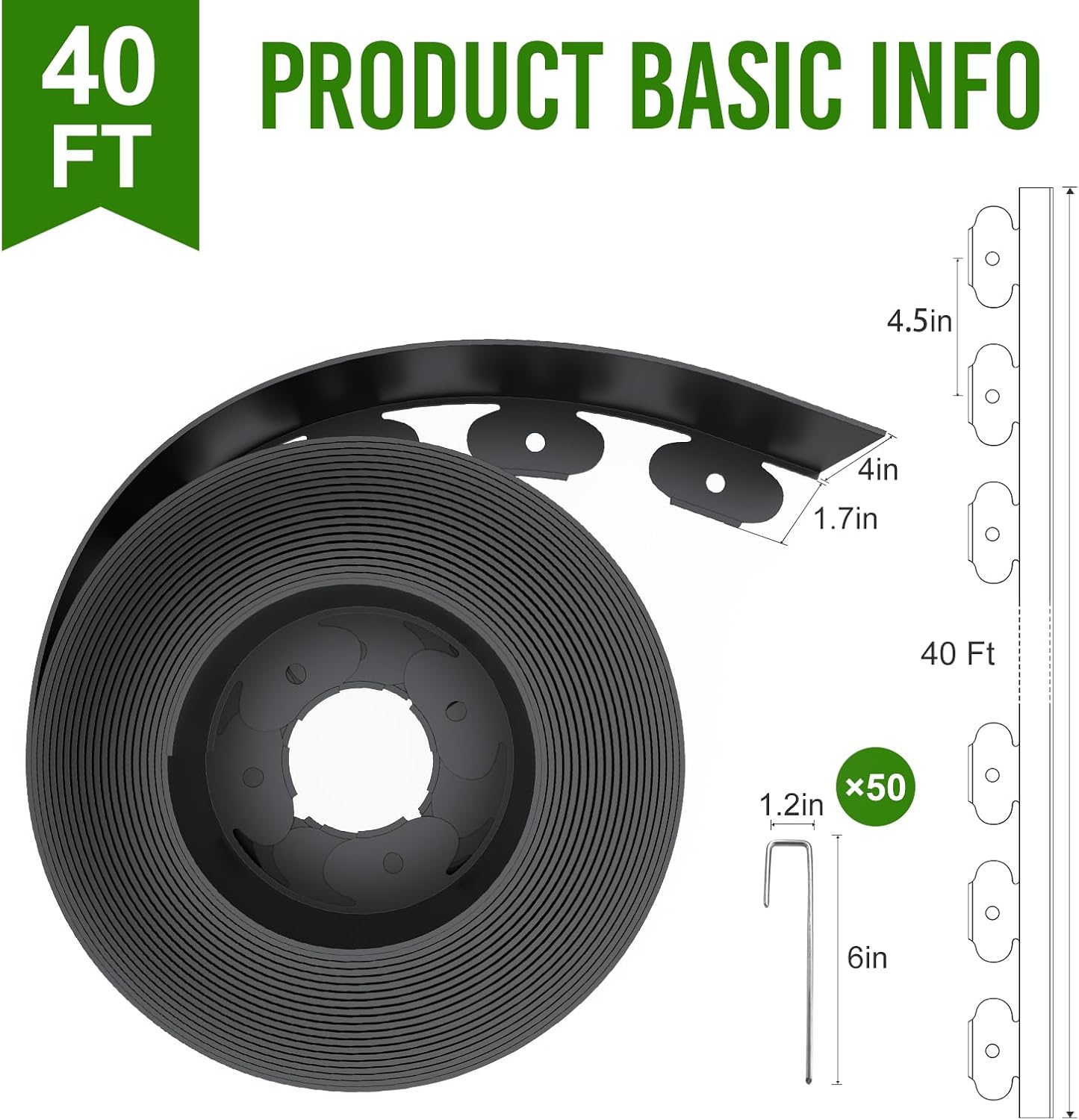 • What You Get: Landscape edging kit included a 40ft edging coil 4 inch tall, 50Pcs metal staples. More staples help you design more professional landscape