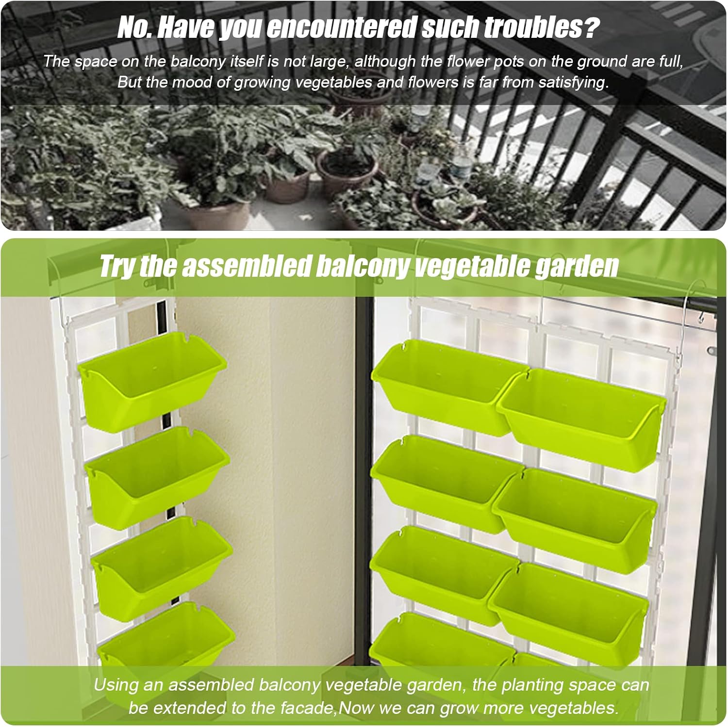 8 Pockets Vertical Planters,Wall Mounted Plastic Plant Grow Pots,Wall Pocket Planters for Indoor,Outdoor,Balcony,Garden Decoration,Light Green