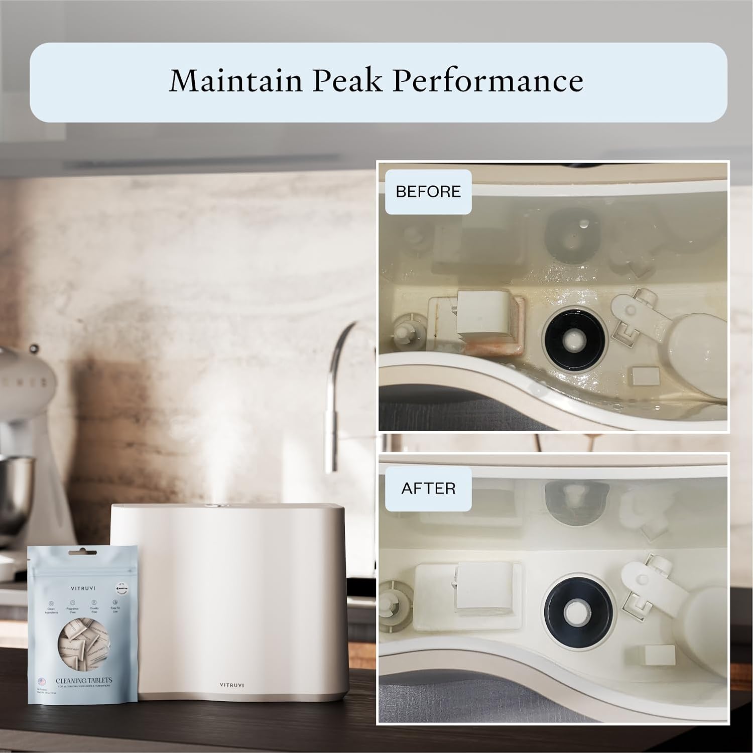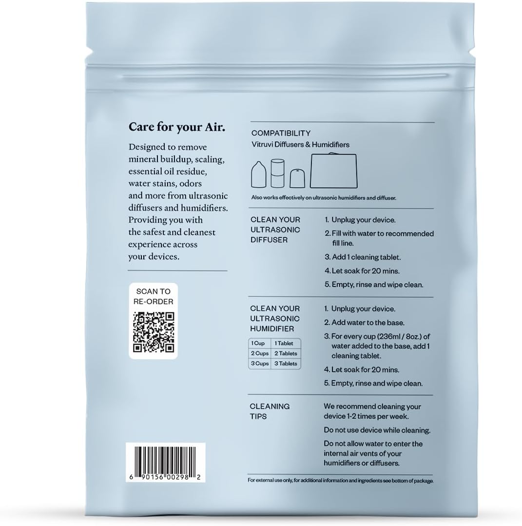 • QUICK CLEANING FOR YOUR DIFFUSER OR HUMIDIFIER: Vitruvi Cleaning Tablets tackle hard water stains, essential oil residue, and mineral buildup in minutes—no scrubbing required, preserving device performance and longevity.