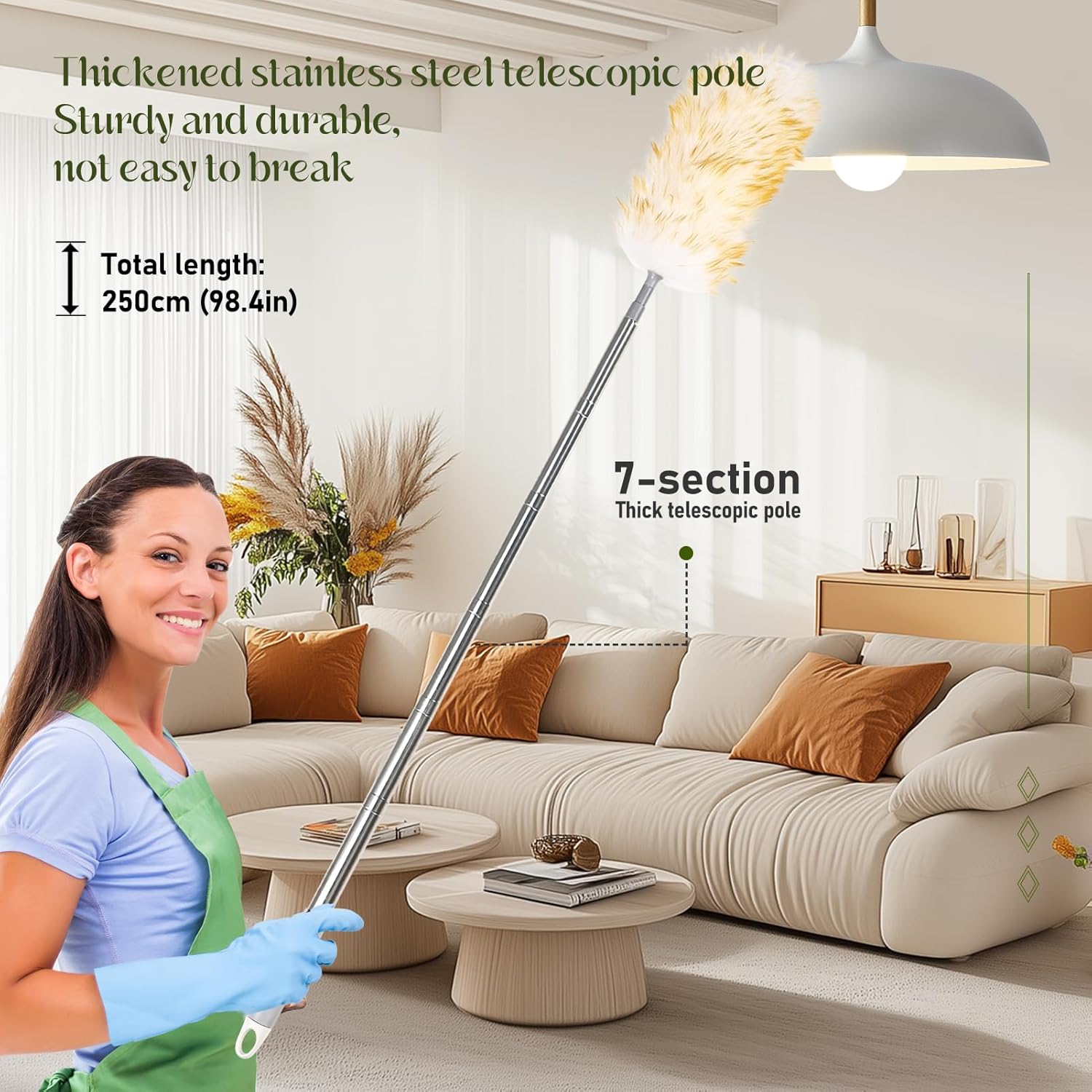 Lambswool Duster for Cleaning with Non-Slip Handle 98.4" Removable Retractable Feather Duster for Cleaning Ceiling Fans Window Blinds Interior Roof Furniture(1PCS)