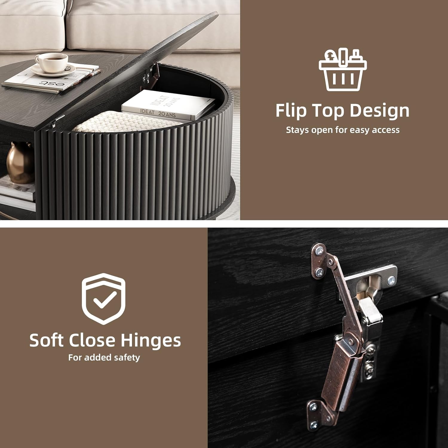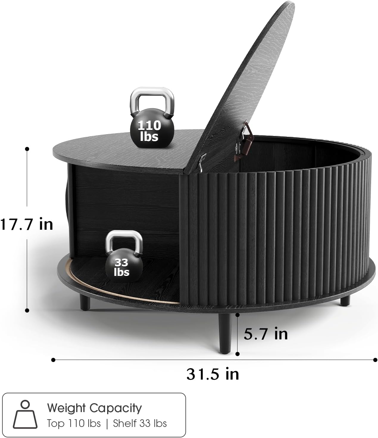 • Space Saving: This 31.5"coffee table is compact in size and adopts a 2-tier structure with hidden storage space inside and open storage space at the bottom,providing you with extra space to store magazines,snacks and trinkets,making your living room more tidy