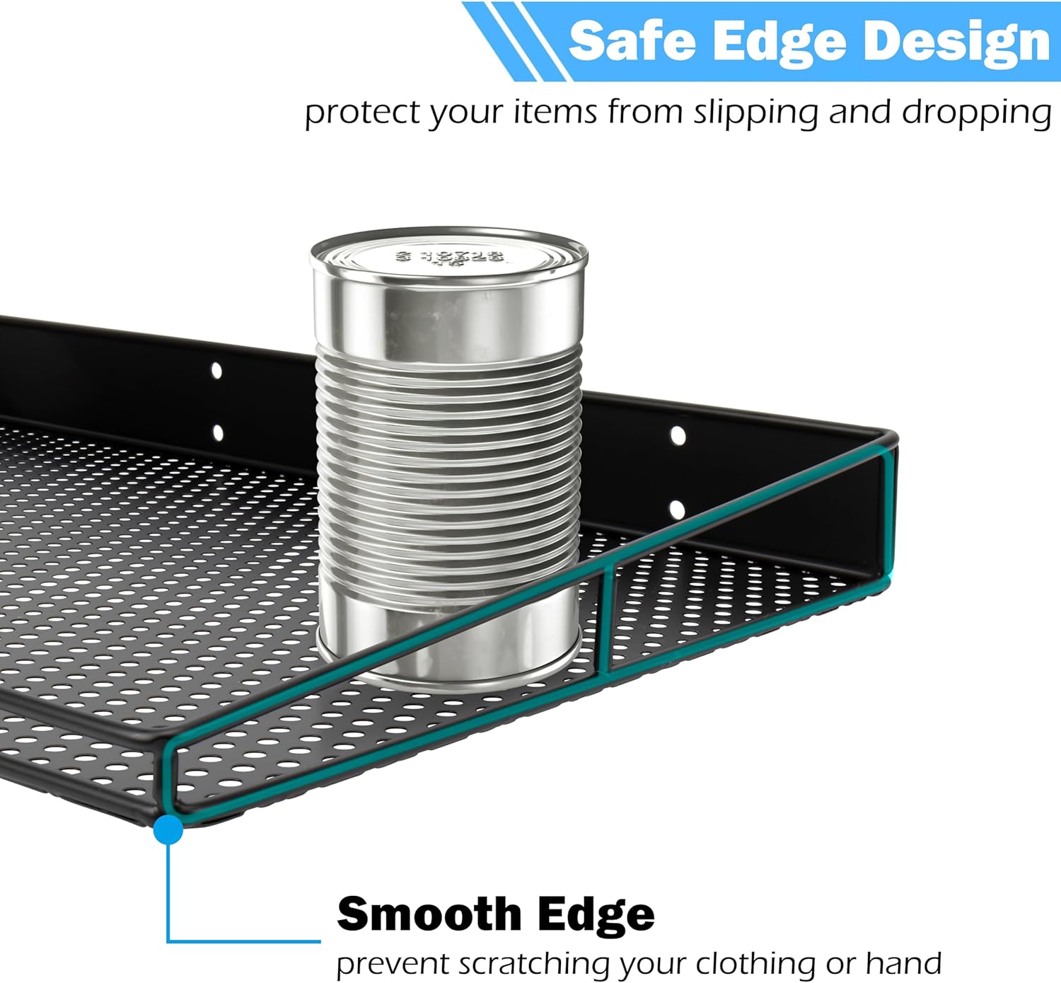• Safe Edges: No sharp angle design, the edges of garage storage shelves are smoothed to avoid scratching your clothing or hand. It also keeps your items safely on the shelf to prevent slipping and dropping.