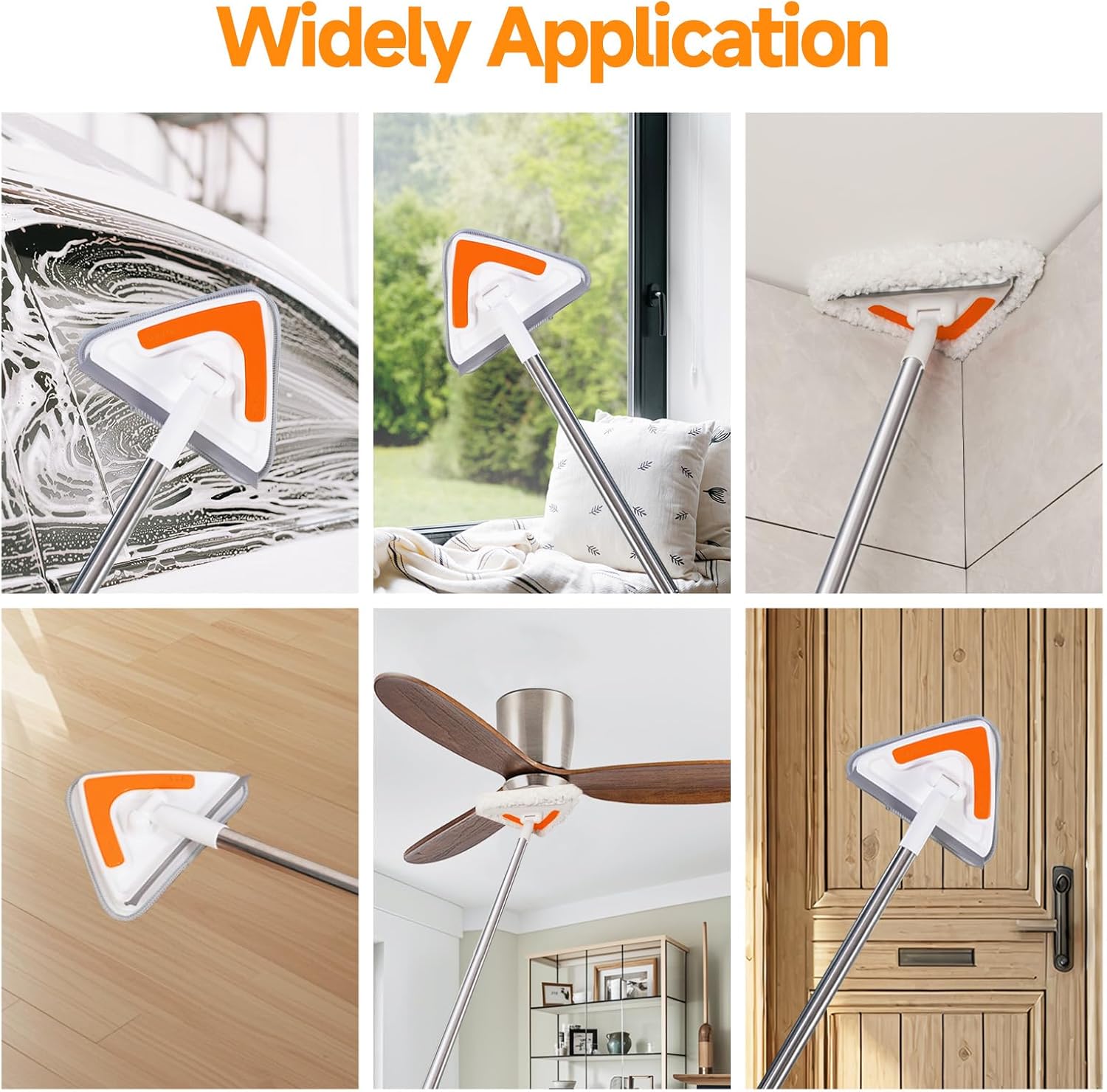• Flexible Triangle Mop Head:Our triangle mop head features a 180°rotation, allowing you to bend it to any angle and clean those hard-to-reach areas like corners and under furniture,effectively cleaning dust, pet hair, and spider web from your floors and ceiling.Create a cleaner, healthier home for you and your family.